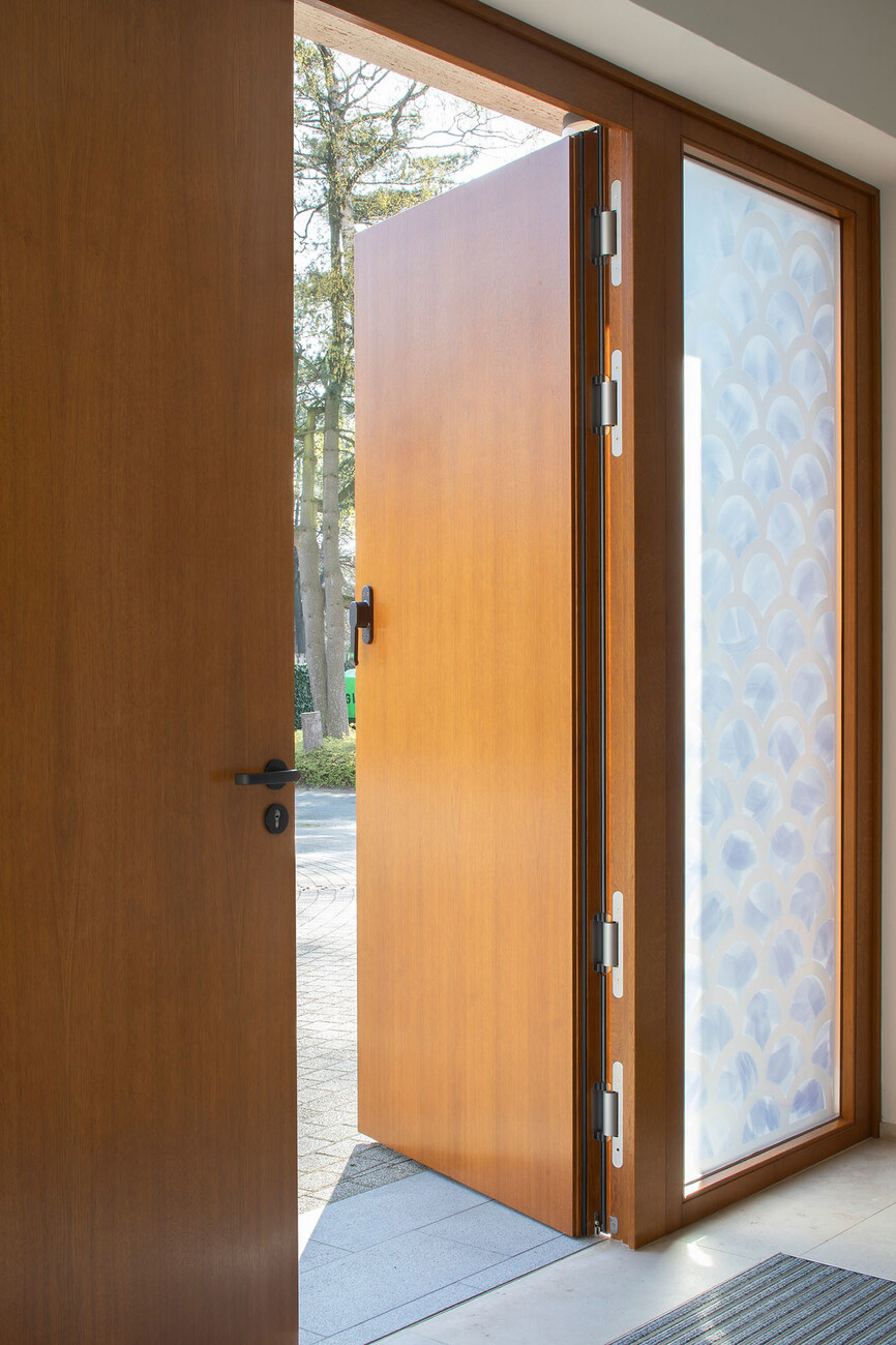 Um die sichere und dauerhafte Funktion der großformatigen neue Doppelflügeltür zu gewährleisten, kommt Bandtechnik von SIMONSWERK aus dem benachbarten Rheda-Wiedebrück zum Einsatz. Die beiden Türflügel sind mit je vier verdeckt liegenden Türbändern der Modellausführung TECTUS TE 680 3D FD ausgestattet, die paarweise oben und unten die Türblätter halten. Gleich mehrere Gründe sprachen für die Verwendung des Produktes von SIMONSWERK. So wünschten sich Planer und Bauherr verdeckt liegende Bänder – einerseits, um die Ästhetik der neuen Tür nicht zu beeinträchtigen, andererseits, damit die Bänder bei der nach außen öffnenden Doppeltür im geschlossenen Zustand nicht zugänglich sind. Ein weiterer Grund für den Einsatz der Serie TECTUS von SIMONSWERK liegt im hohen Eigengewicht der Türen und in der zusätzlichen Belastung durch die mechanische Kraft des Drehflügelantriebs. Das TECTUS-Bandsystem wurde bei der Entwicklung auf hohe Beanspruchung ausgelegt und trägt bis zu 160 Kilo. Bei der Montage bietet es den Vorteil, dass es sich dank der 3D-Verstellung einfach justieren lässt. Die umlaufende Dichtung verhindert zudem zuverlässig das Eindringen von Feuchtigkeit im Bereich der Bänder. So können die Gläubigen nun nach der Renovierung einfach und sicher in ihr neu gestaltetes Gotteshaus eintreten.