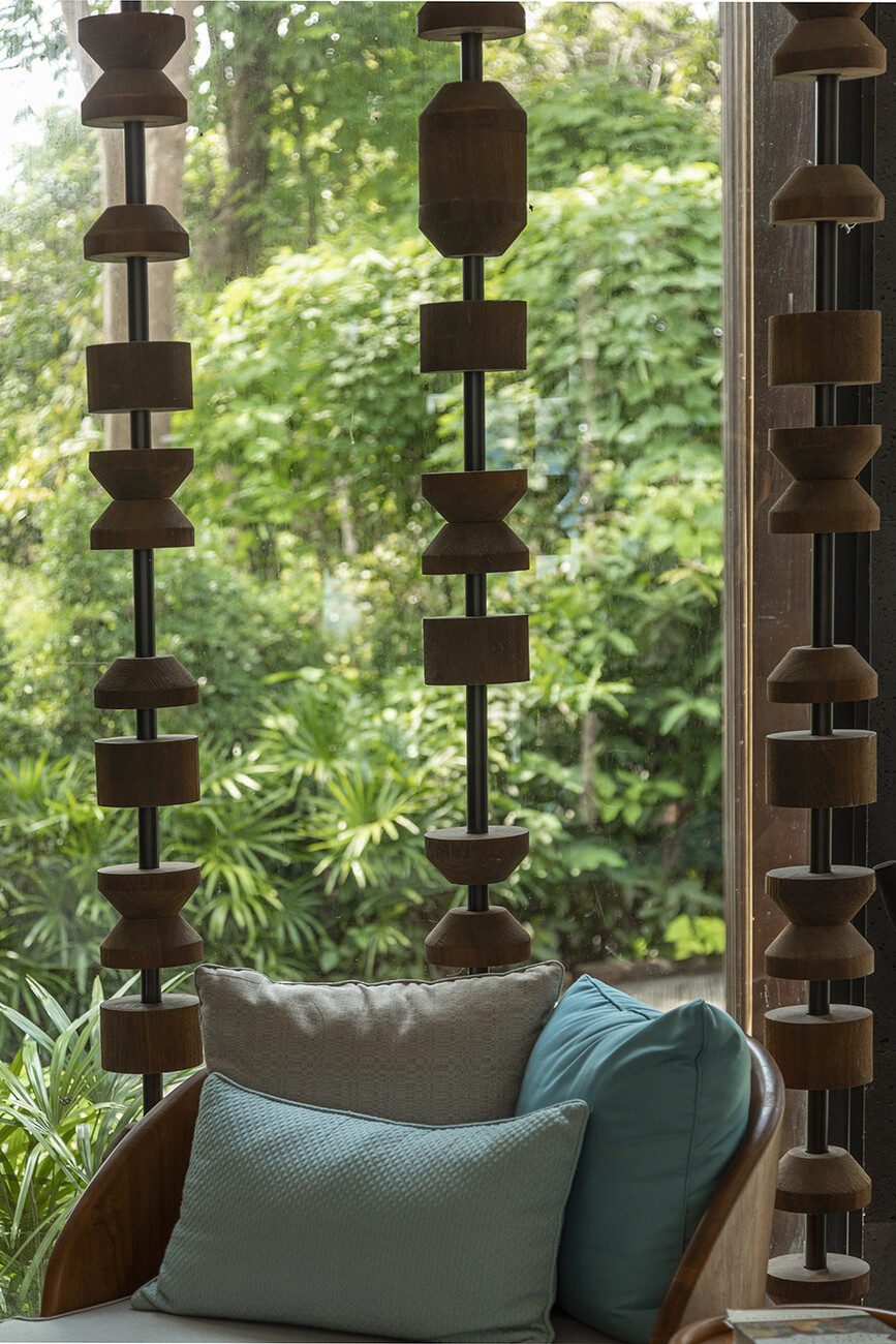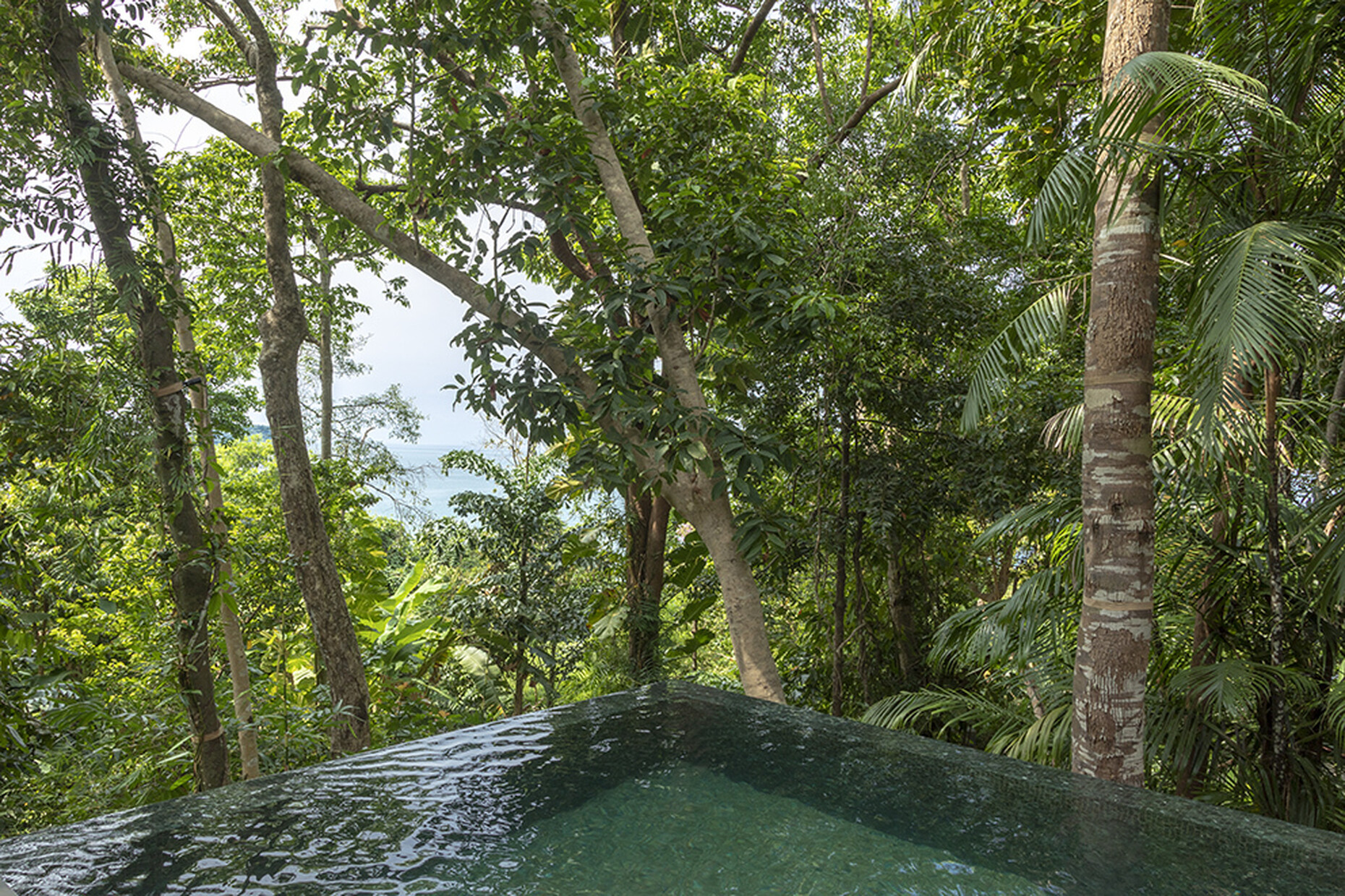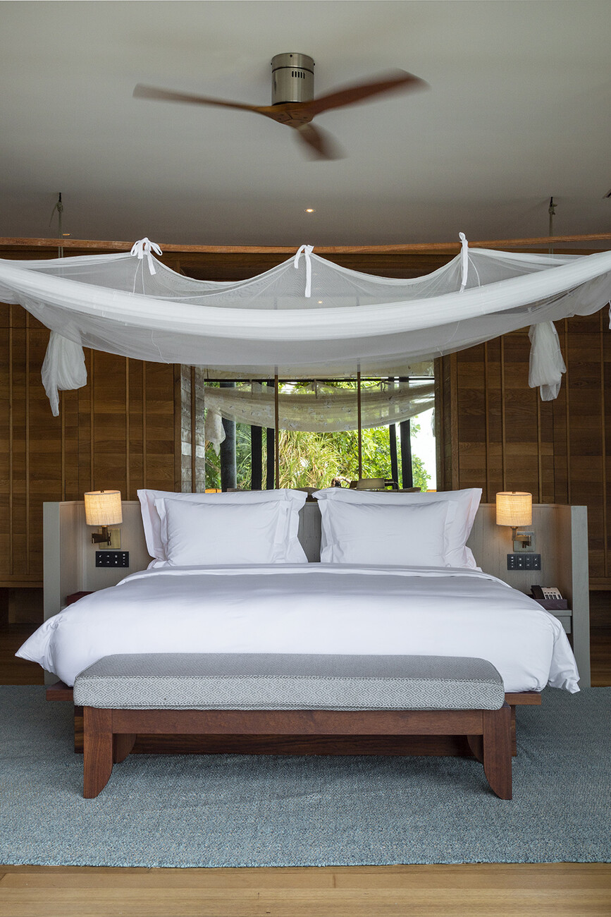 Während die Biofarm auf dem Festland liegt, steht das Resort auf einer 12 Hektar großen Insel mit reicher tropischer Vegetation. Es besteht aus insgesamt 40 Villen, zwei Restaurant und einem großen Spa. Auch hier wurde höchster Wert darauf gelegt, dass die Gebäude weder den Regenwald mit seinen 50 Meter hohen Bäumen und seiner reichen Tierwelt noch das maritime Ökosystem beeinträchtigen. Vor dem Bau wurden deshalb umfassende botanische, biologische und meeresbiologische Studien durchgeführt.