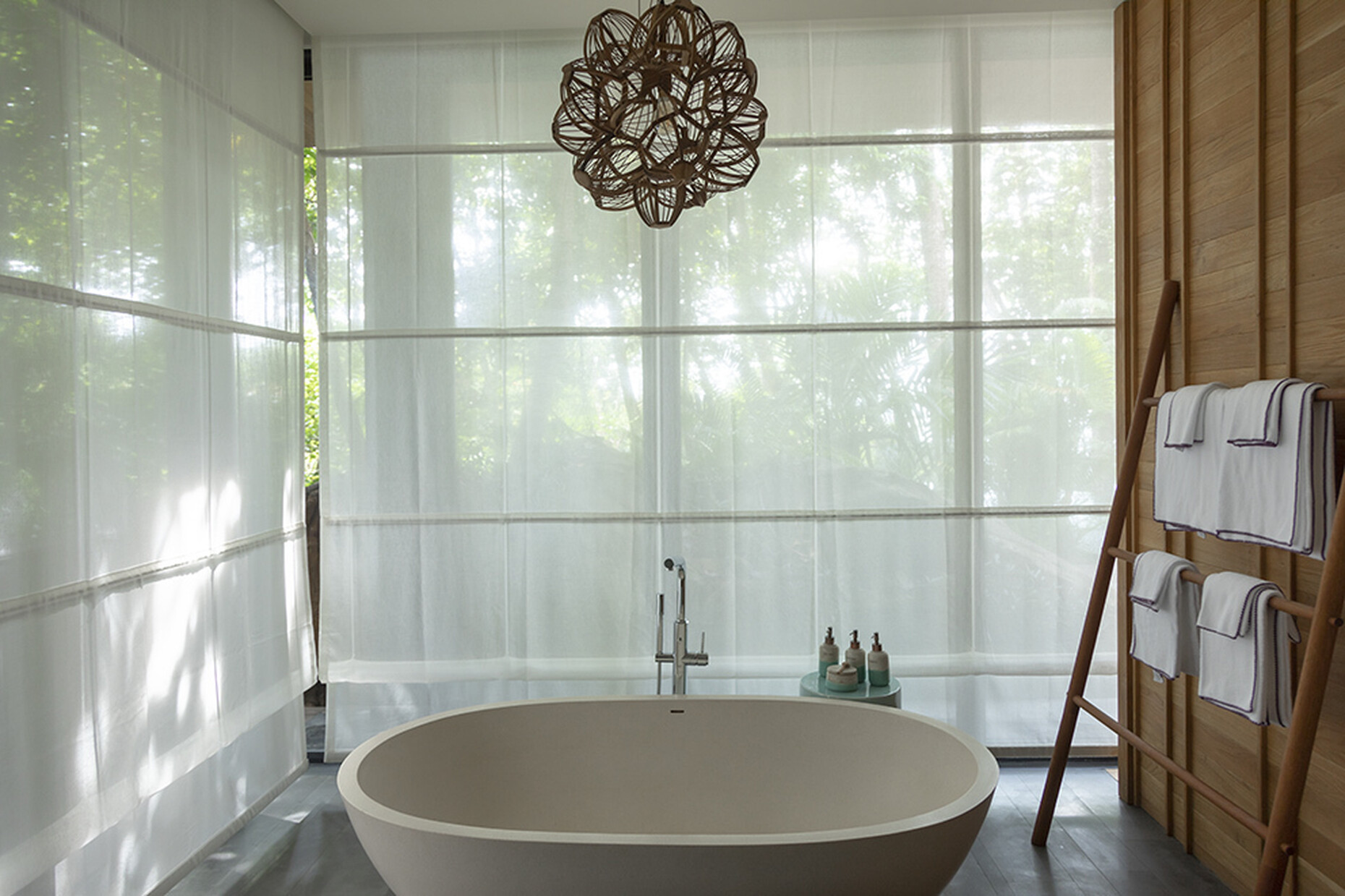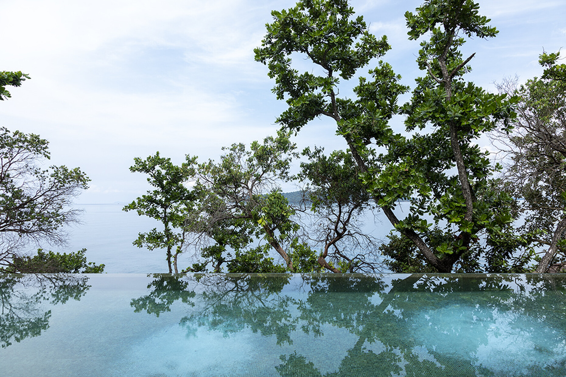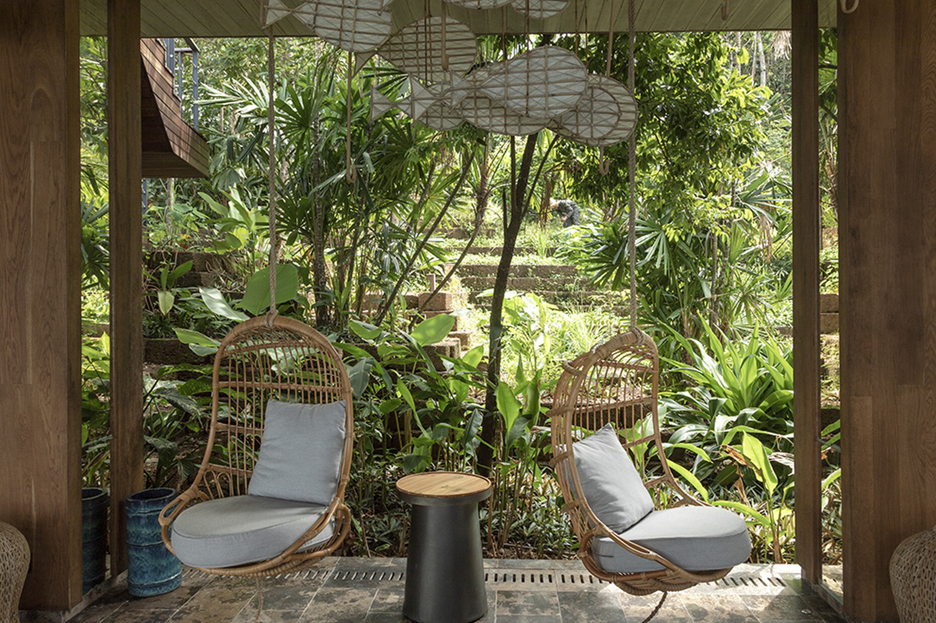 Auch bei der Architektur steht die Nachhaltigkeit im Fokus: Die Gebäude wurden aus regionalen Materialien errichtet, etwa vor Ort geschlagenem Sokromholz und rotem Sandstein. Die Einrichtung besteht unter anderem aus geflochtenem kambodschanischen Rattan und lokal hergestellter Keramik. Auch ein großer Biogarten ist Teil der Hotelanlage, der mit aufgearbeitetem Schmutzwasser aus der hochmodernen Kläranlage bestellt wird. Apropos Wasser: Die hoteleigene Abfüllanlage befüllt Glasflaschen um Plastikmüll zu vermeiden.