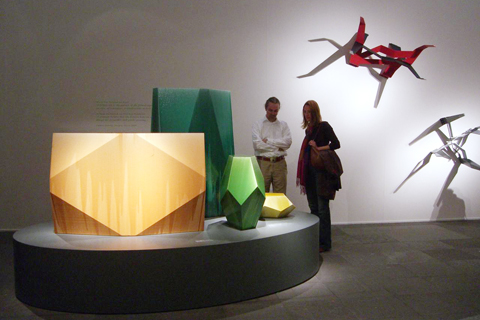 Im halbdunkeln Raum sind sie gelandet, die bewusst unidentifizierten Objekte von rund vierzig Künstlern und Designern, allesamt Objekte, die sich irgendwo zwischen Kunst, Design und Designart bewegen, auf den ersten Blick aber nur schwer einzuordnen sind. Die Ausstellung hat vieles Richtig gemacht: Die Exponate sind ausnahmslos von hoher Qualität, es wurde eine repräsentative Auswahl getroffen, vor allem aber überzeugt der konzeptuelle Ansatz, auf eine Zuordnung der Objekte zu verzichten und das Urteil darüber, ob es ich nun um Kunst oder Design handelt, dem Betrachter selbst zu überlassen.