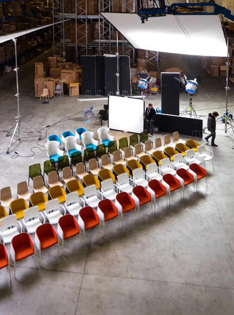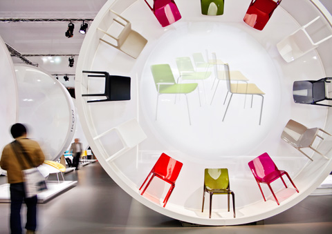 Auf dem Salone del Mobile 2012 wurde auf dem Messestand von Pedrali in jedem Riesenrad ein Stuhl vorgestellt.
