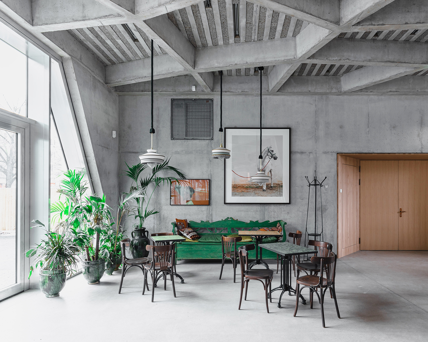 Ulrike Dix: Was wie ein üppiger Garten erscheint, ist eigentlich ein ehemaliger Friedhof, der sich mehr und mehr zu einer Art Parkarchitektur entwickelt. Die Architektur des Spore und des Publix Hauses nutzen den maximalen Kontrast zwischen der lauten und heterogenen Hermannstraße und der ruhigen Rückseite. Das Erdgeschoss ist niederschwellig zugänglich. Unsere Idee, seine Räume eng mit dem Stadtraum und mit dem Grünraum zu verweben, geht in der Umsetzung gut auf. Gegensätze ziehen sich an, sie unterstützen im Spore Haus den Bewegungsfluss von der Straßenseite auf die grüne Rückseite und sorgen für spannende Durchblicke.