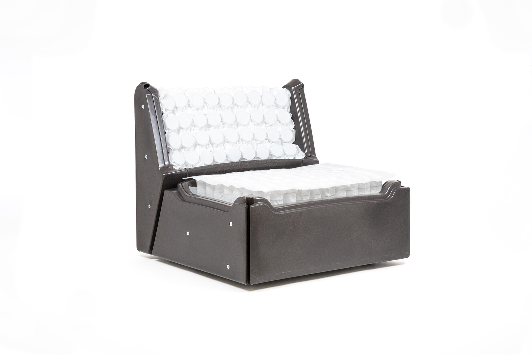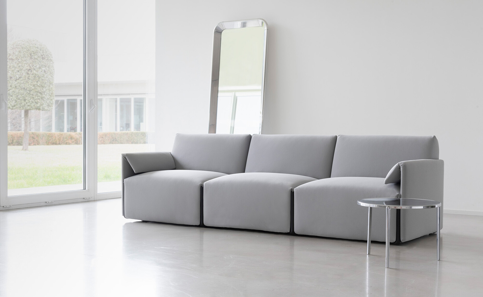 "Wie man sich zur Kreislaufwirtschaft positioniert, ist eine grundsätzliche Entscheidung. Als wir für Magis an dem Sofa "Costume" gearbeitet haben, ist mir das bewusst geworden", sagt Stefan Diez. Statt ein Polstermöbel im traditionellen Verfahren herzustellen, hat er gemeinsam mit Dominik Hammer für Magis einen nachhaltigen Aufbau erdacht, der es dem Nutzer gewährt, jedes Teil bei Bedarf auszutauschen. "Zu Beginn erschien die Umsetzung der Idee beinahe unmöglich", erinnert sich der Designer. Vier Jahre Entwicklung stecken in "Costume" und das Ergebnis ist einfach wie genial: Die Basis bietet ein Körper aus recyceltem Plastikgranulat, das in die vorgegebene Form geschmolzen wird. Für den Komfort folgt ein Einsatz aus Taschenfederkernen. Den Abschluss bildet eine dünne Schicht Polyurethan-Schaumstoff sowie der Bezug aus Stoff – mit "One" von Fidivi aus recycelten PET Flaschen, "Dato" von Torri Lana oder "Uniform Melange" von Kvadrat. Wie bei einer Segelbootabdeckung ist es möglich, diesen mit Hilfe von Spanngurten in Form zu ziehen und bei Bedarf ebenso schnell wieder zu lösen. Der modulare Aufbau lässt das Sofa indes nicht nur flexibel werden, sondern gewährt auch ein umweltschonendes Recycling. Komplex, aber für den Nutzer nie kompliziert, typisch für die Designs von Stefan Diez. Ganz nebenbei hat er die Konstruktion des Sofas neu gedacht, wie auch das Konzept Sofasystem optimiert.