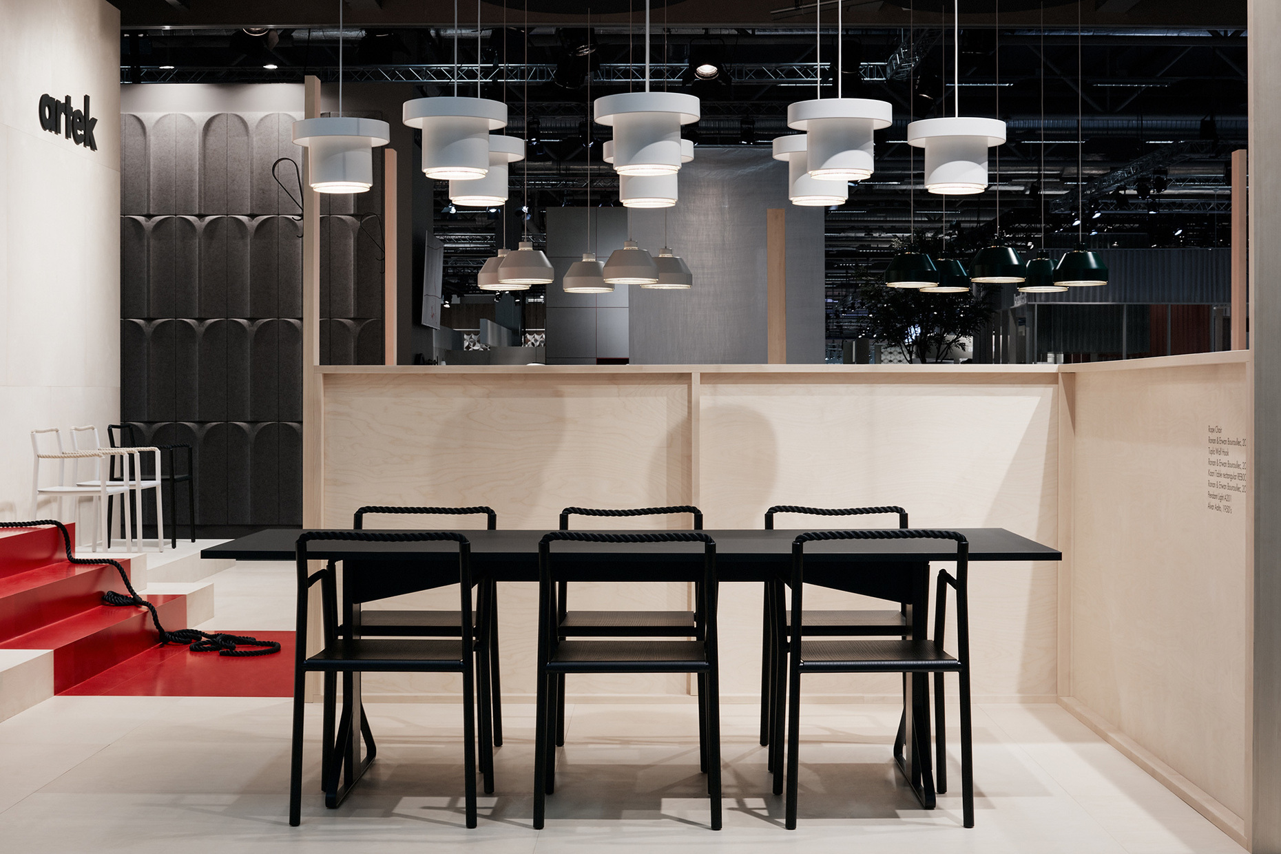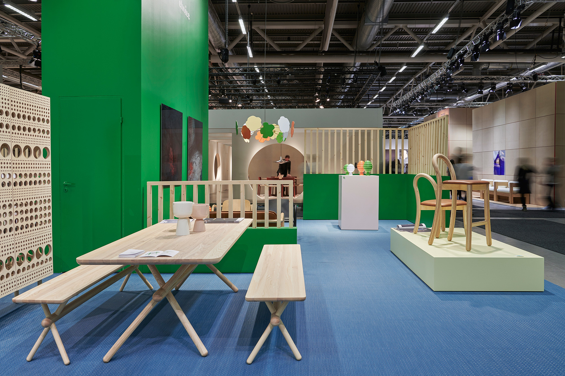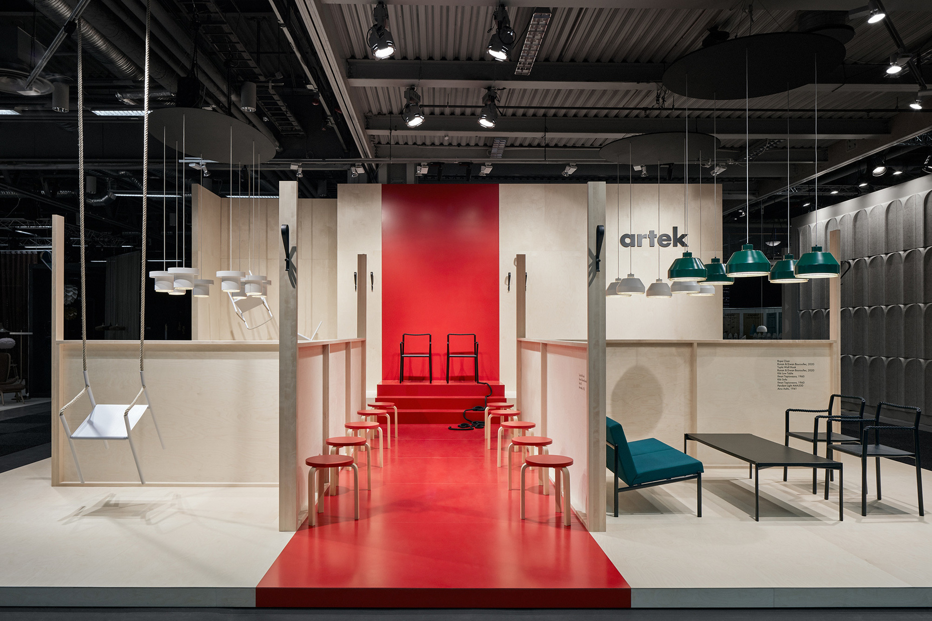 Das sind gute Nachrichten auch für die Stockholm Furniture Fair, deren internationaler Erfolg auf Gedeih und Verderb mit demjenigen der skandinavischen Möbelindustrie verknüpft ist. Auch die Messe selbst versucht mit innovativen Konzepten ihre Stellung abzusichern. Zum dritten Mal wurde die Konferenzhalle zu einer Mischung aus Restaurant, Lounge und Auditorium gestaltet – dieses Mal nach Entwürfen von Fredrik Paulsen, der ein neo-postmodernes Ambiente gestaltet hat, dass an die kunterbunten Architekturen von Charles Moore und Michael Graves erinnert. Das Foyer war dagegen wie in den vergangenen Jahren die Wirkungsstätte des Ehrengastes – 2020 waren dies Nipa Doshi und Jonathan Levien. Das Londoner Designerduo gestalteten einen beeindruckend schönen Pavillon aus Sperrholz, in dessen gewölbten Innenräumen sie ihr bisheriges Schaffen ausbreiteten.