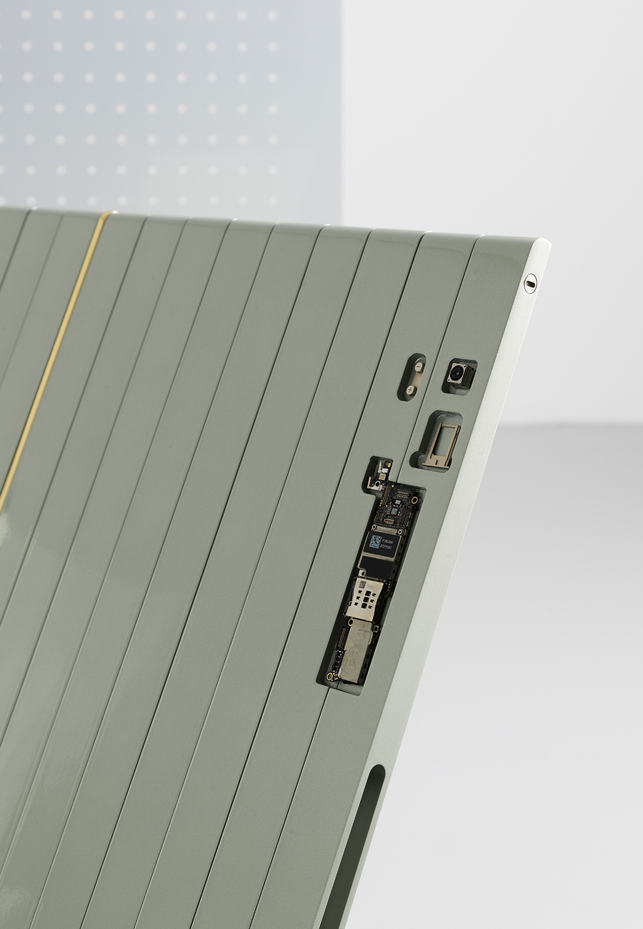 Studio Formafantasma: Die Ausstellung zeigt unter anderem eine Animation, in der wir mit Hilfe von 3D-Rendering mögliche Wege für die Reparatur und das Recycling von Elektronik visualisieren. Dabei werden die aktuellen Recycling-Technologien sowie die Grenzen von Anlagen in Industrie- und Entwicklungsländern berücksichtigt. Ein allgemeiner Trend in der Elektronik ist beispielsweise die Miniaturisierung von Produkten. Dies hat den bereits weit verbreiteten Einsatz von Klebstoff zur Befestigung von Bauteilen verstärkt. Die Konstruktion von Objekten mit platzsparenden Verbindungen garantiert eine präzise Trennung der Materialien. Auch der Einsatz von visuellen Erkennungstechnologien bei der Sortierung von Abfällen hat großes Potenzial, ist aber noch unerforscht. Elektrische Kabel sind sehr häufig mit schwarzem Gummi überzogen. Aufgrund der dunklen Farbe und Opazität der Oberfläche werden sie jedoch von visuellen Detektoren nicht erkannt. Eine einfache Designwahl, wie die Verwendung von farbigem Gummi oder sogar einer gemusterten Oberfläche, könnte das Recycling des in Elektrokabeln verwendeten Kupfers drastisch verbessern. Elektroschrottobjekte sind auch oft nicht mit Informationen über ihre Materialität gekennzeichnet. Die ständige Entwicklung neuer Polymere macht es schwierig, die Bestandteile zu identifizieren und präzise zu trennen. In Entwicklungsländern werden rudimentäre und oft toxische Methoden eingesetzt, um zu bestimmen, um welches Material es sich handelt, z.B. wird die Verbrennung verwendet, um die Zusammensetzung anhand der Schmelzweise und Farbe der Flammen zu verstehen. Als Lösungsansatz stellen wir uns ein Szenario vor, in dem Objekte an Recycler mit einem eingebetteten digitalen Materialpass in Form eines QR-Codes und einer universellen Farbkodierung geliefert werden.