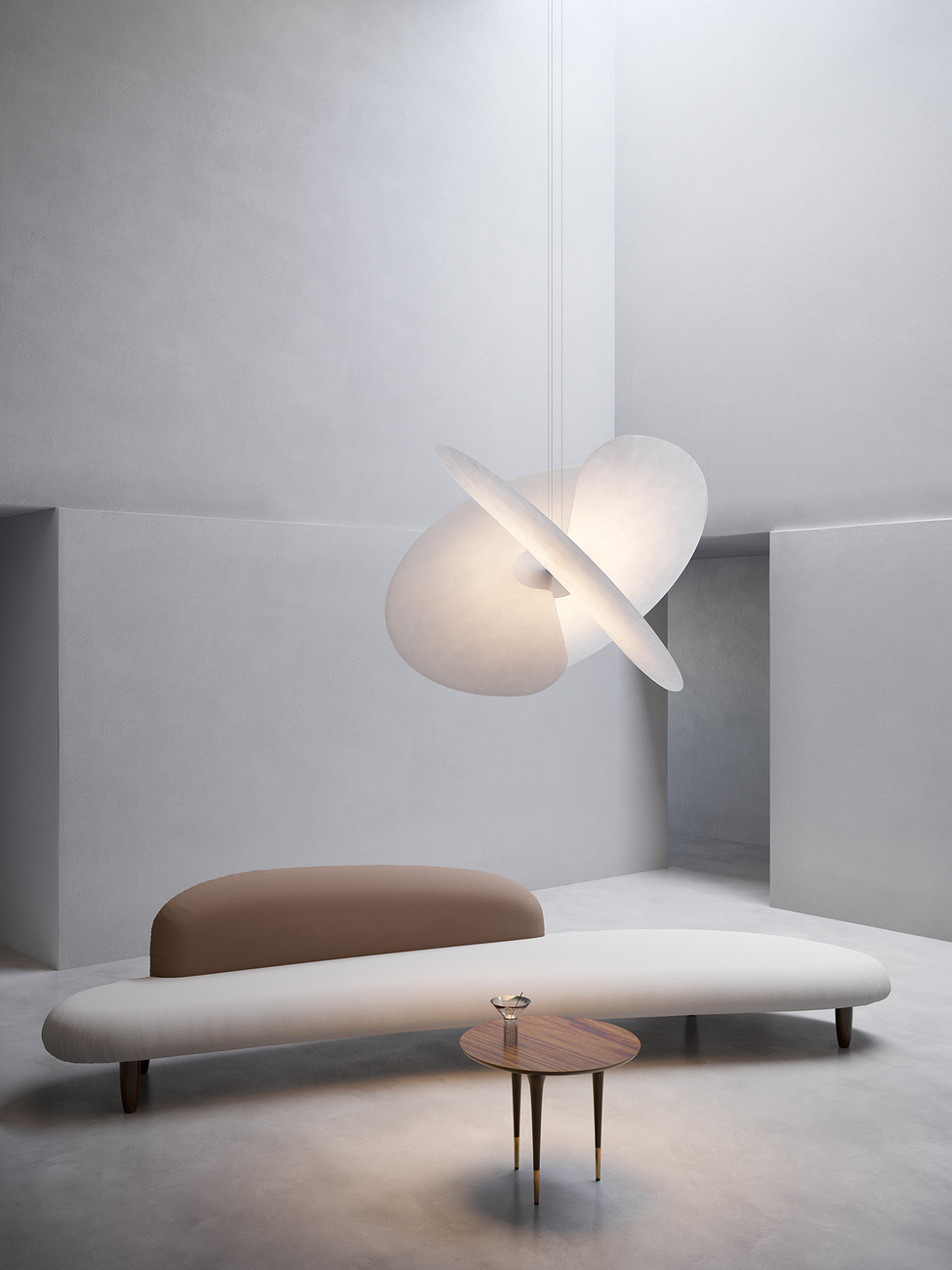 Bestehende Sichtweisen hinterfragen und in eine neue Form bringen, ein Ansatz den viele Produktneuheiten auf dem supersalone spiegelten. Ecken und Kanten sah man dabei selten – stattdessen standen organische Körper, sanfte Abrundungen und weiche Bezüge in natürlichen Farbtönen hoch in Kurs. Bei den Neuheiten im Bereich der Leuchten formierte sich die Suche nach der Essenz in einer Reduktion der Komplexität. Jasper Morrison schuf mit "Oplight" für Flos die laut ihm "offensichtlichste, endgültige Form, die eine Wandleuchte haben kann". Eine mit LEDs bestückten Platine sowie eine geriffelte Platte sorgen dafür, dass das Licht in einem schrägen Winkel von der Wand abgelenkt wird. Unaufdringlich im Design, aber einprägsam – ebenso wie "Nile" von Rodolfo Dordoni für Foscarini, für die ein Glasdiffusor auf einem Marmorsockel angebracht ist, der in den Ecken ineinandergreift und dank nicht sichtbarer Verbindungen an seinem Platz bleibt. Flos setzte parallel dazu auf eine hohe Flexibilität: Die Kollektion "Vine Light" von BIG bietet eine Vielzahl an Lichtszenarien, da opto-elektronische und mechanischen Elemente in einem flexibel drehbaren Körper verbaut sind. Luceplan zeigte mit "Levante" von Marco Spatti eine Kreuzung von drei großen Fächern, die sich zu einem leichten Körper zusammenfügen und das Licht gleichmäßig über die Fläche zu verteilen. Das Material stammt aus der Lebensmittelindustrie und ist waschbar, widerstandsfähig und recycelbar. Omer Arbel hingegen verlieh dem Leuchtenkörper wie gewohnt eine künstlerische Note und brachte für "100" mehrere Glaskünstler in einem performativen Akt zusammen: Geschmolzene Glasblasen wurden zusammengeschlagen, um ineinandergreifende Formen zu erzeugen.