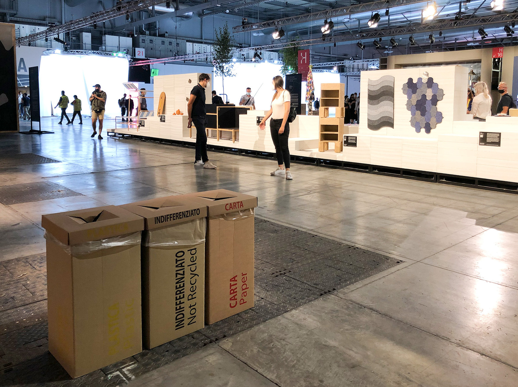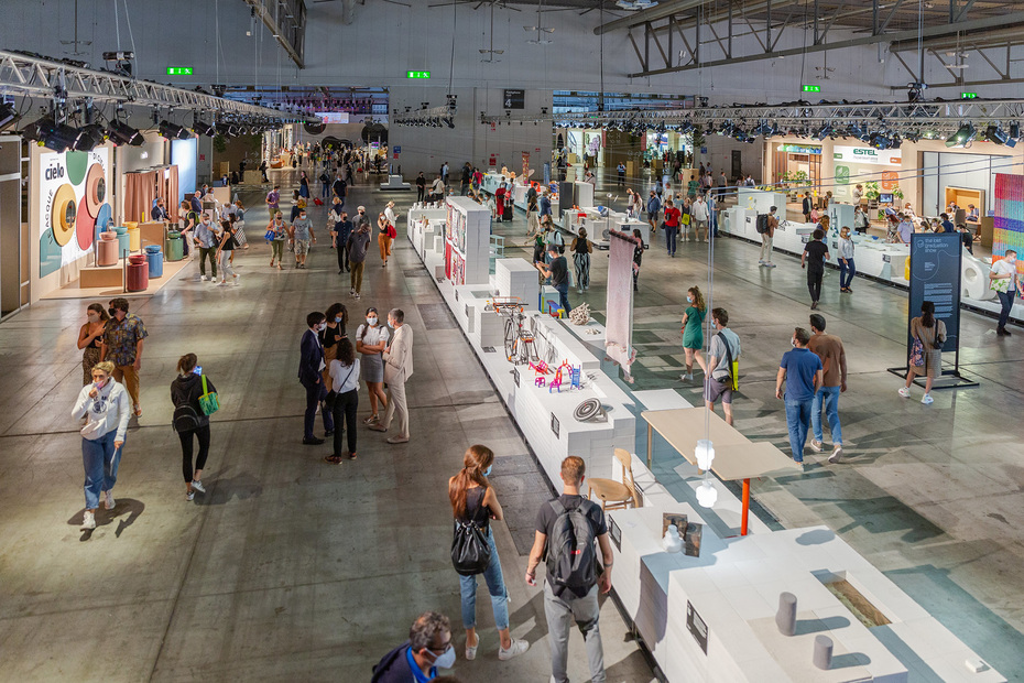 Mailand, endlich wieder. Nachdem die Welt ab März 2020 in den pandemiebedingten Lockdown gesetzt wurde, war an Messen und Events nicht mehr zu denken. Hatten diese bis dato den Kalender der Designszene strukturiert, schwebte nun plötzlich alles im freien Raum. Unternehmen und DesignerInnen mussten Prozesse neu koordinieren, Visionen hinterfragen, neue Wege finden und in digitale Lösungen investieren. Mit dem supersalone hat der Salone del Mobile.Milano in nur wenigen Monaten eine Sonderveranstaltung auf die Beine gestellt, die Hoffnung auf einen Neustart gibt. Sie wirft aber auch Fragen auf, wie nachhaltig, flexibel und hybrid eine moderne Möbelmesse sein sollte, welche Ästhetik gefragt ist, welches Publikum man ansprechen möchte und welche Angebote hierfür nötig sind. Bespielt wurden die ersten vier der insgesamt 24 Pavillons der Fiera Milano mit gut 1.900 Projekten auf knapp 69.000 Quadratmetern. Natürlich nicht vergleichbar mit den gewohnten Dimensionen des Pre Covid-Salone del Mobile, aber das war auch nicht das Ziel des Kurators, dem Architekten Stefano Boeri und seinem Team aus Co-DesignerInnen wie Andrea Caputo, Maria Cristina Didero, Anniina Koivu, Lukas Wegwerth, Marco Ferrari, Elisa Pasqual und Giorgio Donà. Und so wirkte der supersalone eher wie eine Kombination aus Designbiennale und Festival, als eine klassische Möbelmesse. Statt durch aufwendig gestaltete Wohnwelten zu flanieren, ließ sich nun entlang der vorgegebenen Gänge eine Produktessenz der AusstellerInnen im Schnelldurchlauf erleben, die diese auf leicht erhöhten Podesten und an den Wänden befestigt postierten. Da nur wenig Personal auf den Flächen zugelassen war, bedienten QR-Codes zum Abscannen und eine eigene App des supersalone den Bedarf nach weiteren Informationen. Parallel bot die Webseite des Salone del Mobile eine Vorstellung der Produkte und Marken sowie Interviews und Podcasts. Einige Hersteller erstellten zudem virtuelle Showrooms auf ihren Plattformen. Die Böden der Podeste und Hallen waren aus Holz oder Beton, auf Auslegeware wurde überwiegend verzichtet – eine Änderung, die den Räumen eine andere Akustik bescherte, denn der Schritt der BesucherInnen wurde durch den harten Untergrund nicht automatisch verlangsamt, ihre Geräusche nicht gedämpft.
