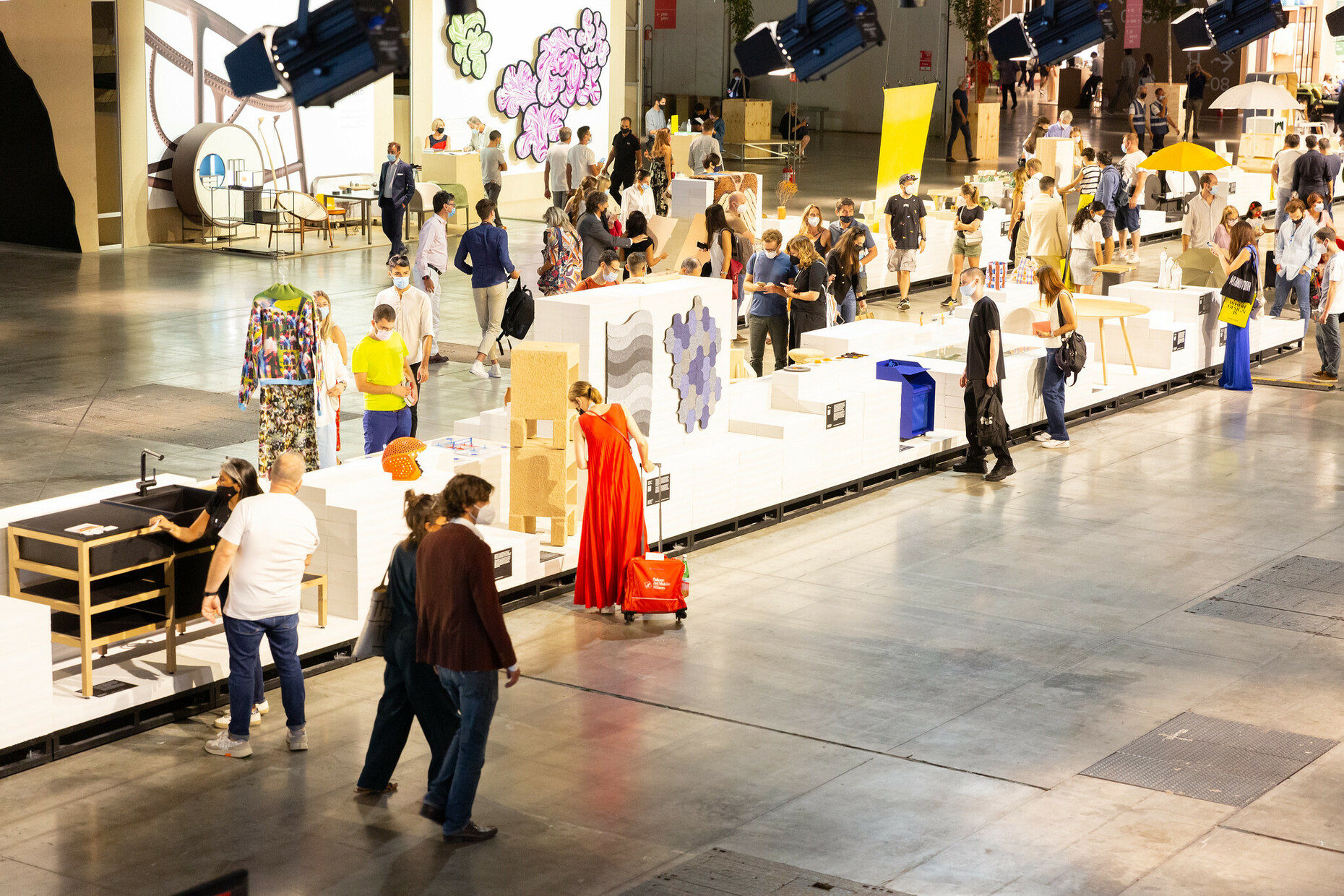 Da auf der geringen Fläche der Messe nicht alle Produktneuheiten in der Gänze ausgestellt werden konnten, bekamen die Installationen der HerstellerInnen in den Showrooms und Galerien eine neue Bedeutung für das Fachpublikum. Zudem boten sie eine Vielzahl an sehenswerten Installationen, wie etwa "Are you open minded?" von Matteo Fiorini und Studio LYS, in der die Produkte von Kartell by Laufen wie Skulpturen in einer Kunstgalerie im Raum verteilt wurden. Hängende irisierende Elemente reflektierten das Licht an den Wänden und der Decke zu einem Kaleidoskop aus Farben und Transparenzen. Ebenso bot die diesjährige Sonderausgabe des Salone del Mobile einen Dialog zwischen Kunsthandwerk und Design, wie beim Event "Doppia Firma: A Garden of Talent", für das Sabine Marcelis und Stylnove Ceramiche die zylinderförmigen Wandleuchten "Pipe Lights" und Dorothée Meilichzon mit Morelato den Holzsessel "Panarea" entworfen haben. Als Inspiration dienten Meilichzon die klassischen "Cape Cod" Liegestühle.