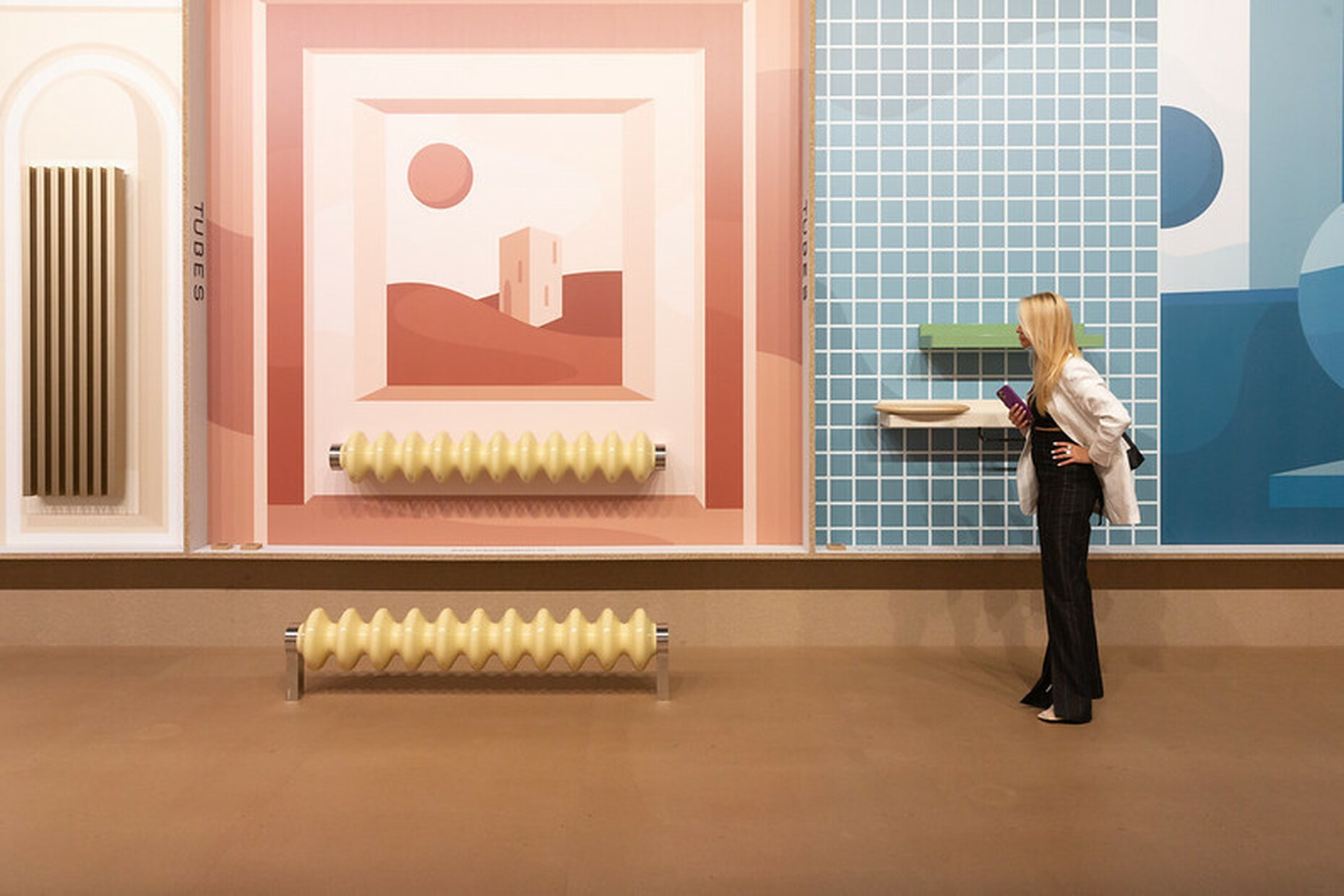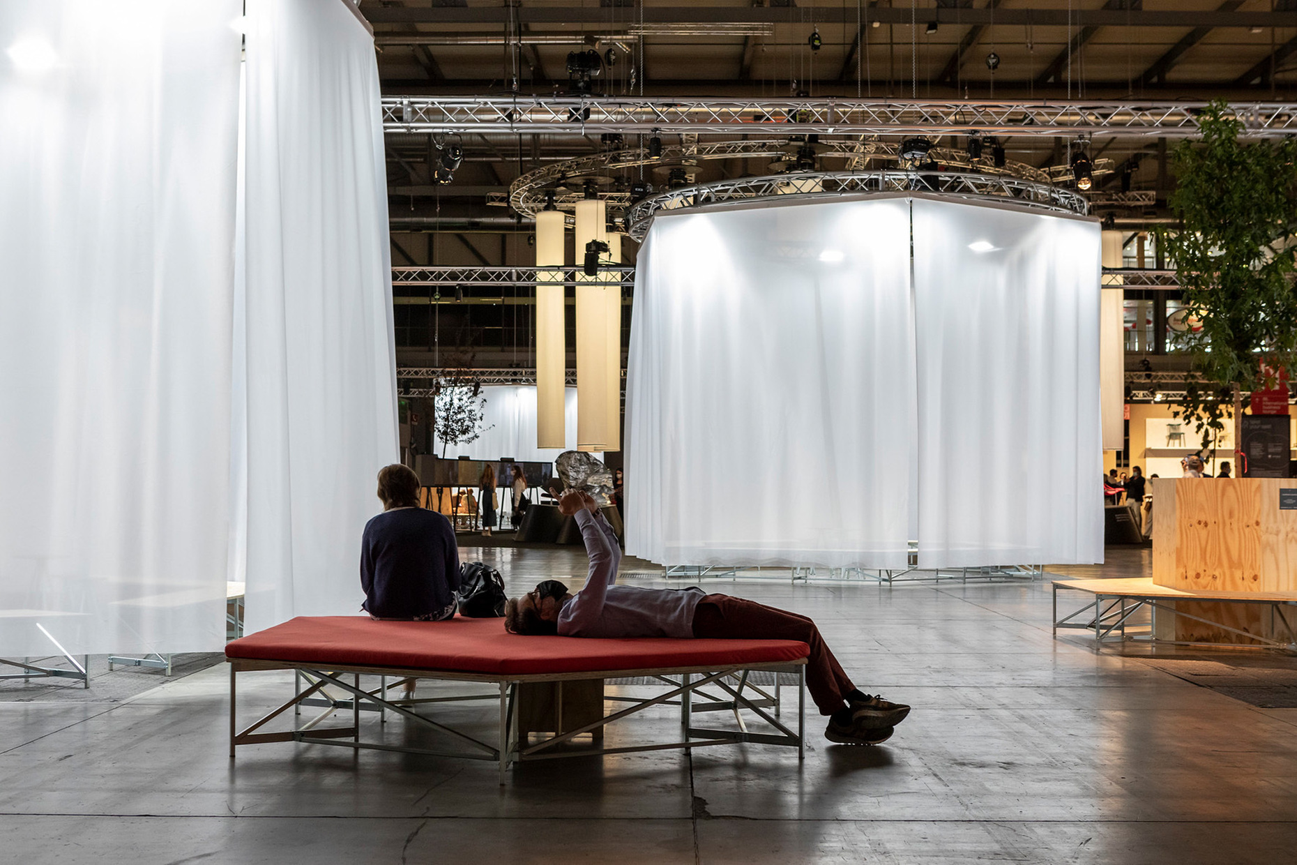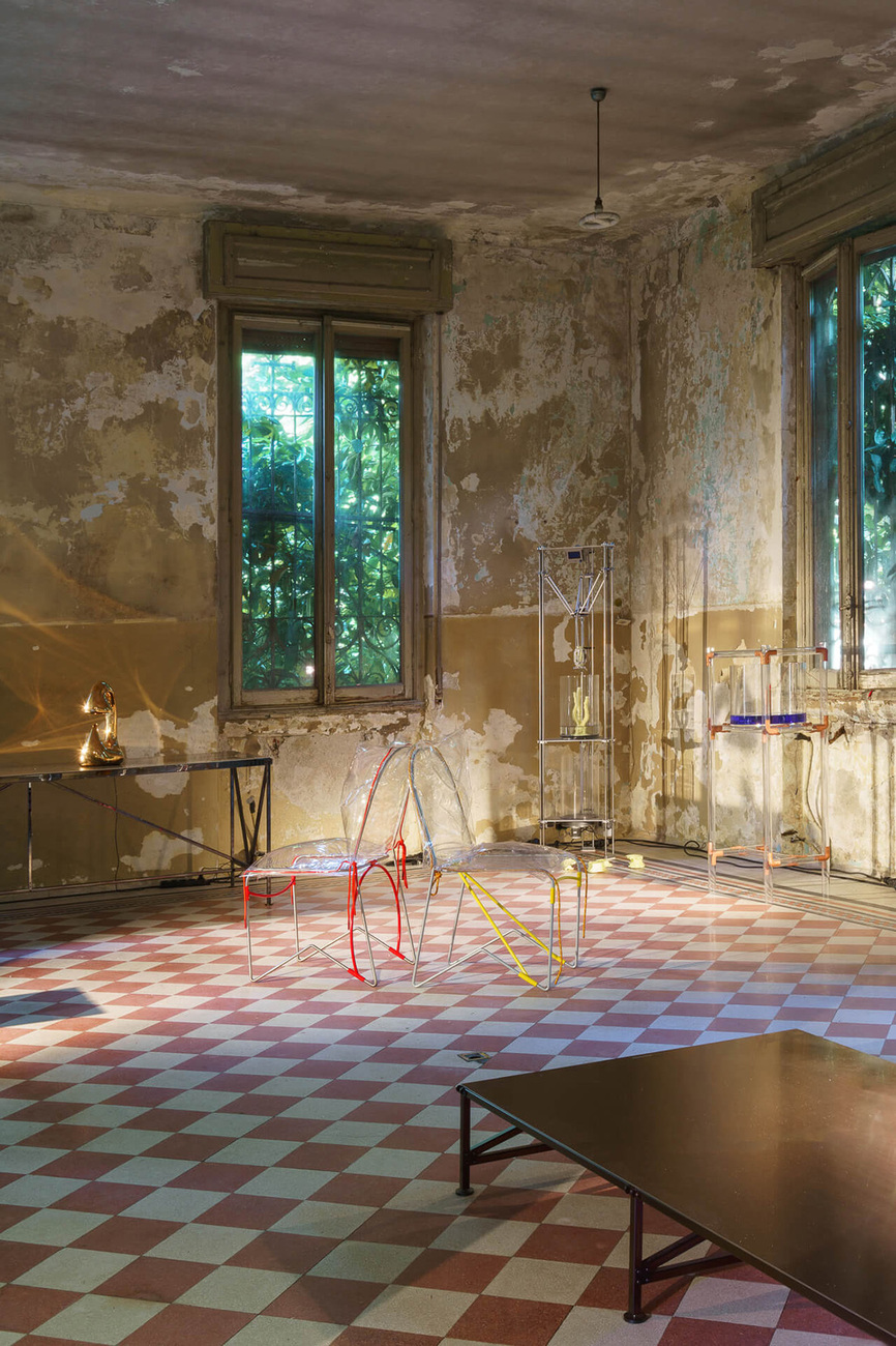 Kuratiert von Valentina Ciuffi und Architekt Joseph Grima bot Alcova in drei leerstehenden Gebäuden auf dem Gelände eines ehemaligen Militärkrankenhauses etwas außerhalb der Stadt und eingebettet in einen Park, eine inspirierende Ausstellung der Arbeiten von über 50 Kreativen – darunter JungdesignerInnen, Marken, Galerien, Kultureinrichtungen und Unternehmen, wie Llot Llov, Mut Design, Nomad Studio, Création Baumann oder The Swiss Arts Council Pro Helvetia. Ein Erlebnis war auch die Ausstellung von Hermès mit Auszügen aus der "Collections Maison": Charlotte Macaux Perelman verwandelte mit BühnenbilderInnen des Mailänder Opernhauses "La Scala" die La Palota in eine beeindruckende Kulisse samt meterhohen Bauten die wie Totems verziert waren. Mit archetypischer Form und umgeben von terrakottafarbenen Sand gaben diese einen Verweis auf die rohen, natürlichen Materialien, die für die gezeigten Produkte verwendet wurden – wie der Sessel "Sillage d' Hermès", geformt aus Buchenholz und Zellulose-Mikrofasern von recyceltem Papier, oder der handgemeißelte Tisch "Lignage d' Hermès" aus belgischen Blaustein. Dior lud zudem elf DesignerInnen und KünstlerInnen ein, eines der Markenzeichen des Hauses, den klassischen "Medaillon"-Stuhl, neu zu interpretieren. Die kreativen Ergebnisse stammen von unter anderem Dimore Studio, Nendo und Pierre Yovanovitch.