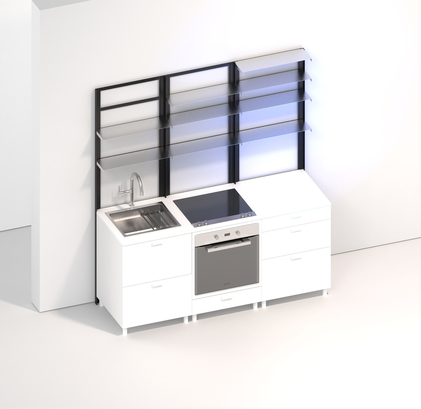 "POSSI" heißt die modulare Küche von Tanita Klein, die als Zentrum im Raum immer wieder neu arrangiert werden kann – ganz nach den individuellen Rahmenbedingungen. Die Inspiration für das flexible System fand die Designerin in ihrer Heimatstadt Frankfurt, genauer gesagt in der "Frankfurter Küche". Erdacht wurde der Archetyp der modernen Einbauküche einst Mitte der 1920er-Jahre von der Architektin Margarete Schütte-Lihotzky als Teil des Stadtentwicklungsprojekts Neues Frankfurt, das von Ernst May initiiert wurde.