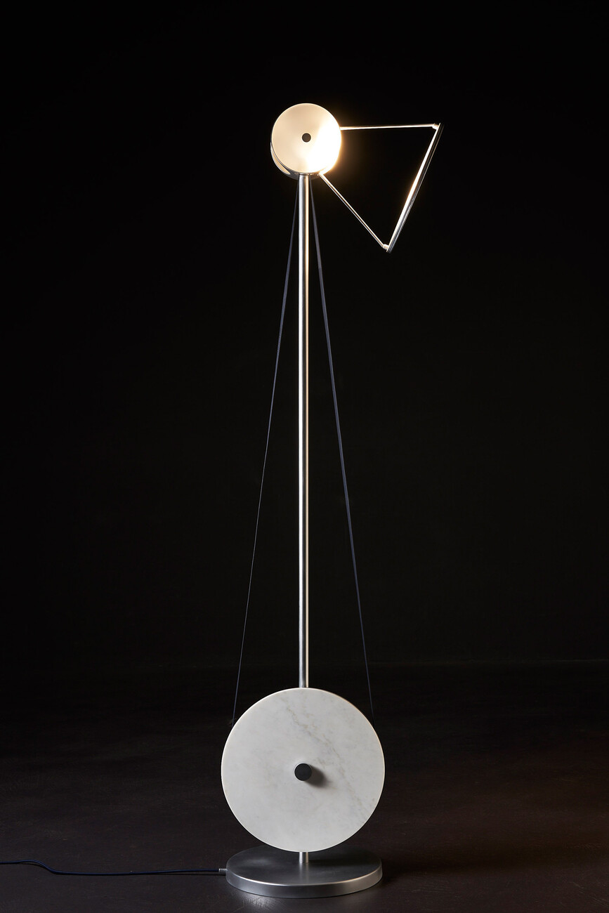 Für den Diffusor nutzten sie PDLC Polymer Dispersed Liquid Crystal, eine schaltbare Folie. Zwischen zwei PET-Folien befindet sich so eine LCD-Folie mit Flüssigkristallen. Das Team erklärt: "Das Panel wird mit Niederspannung betrieben. In der AUS-Stellung sind die Flüssigkristalle nicht ausgerichtet, die Folie ist daher undurchsichtig. In der EIN-Stellung richten sich die durch den Strom belasteten Flüssigkristalle aus, das PDLC wird dann sofort transparent." Ein cleveres und elegantes Detail, das erst bei Nutzung der Leuchten erkennbar ist. Marianna D’Antimo weist zudem auf den Stellenwert der Rohstoffe bei "Tes" hin: "Wir haben den Materialien für 'Tes' große Bedeutung beigemessen. Wenn man die Geschichte von FontanaArte studiert, stellt man fest, dass Glas ein wesentlicher Bestandteil ist. Auch die Verwendung von Marmor verlieh den hergestellten Stücken Einzigartigkeit. Leder hingegen gibt dem Objekt einen persönlichen Aspekt, da es zusammen mit seinem Besitzer altert. Zudem haben wir recyceltes Aluminium aus der Luftfahrt als Metall gewählt".