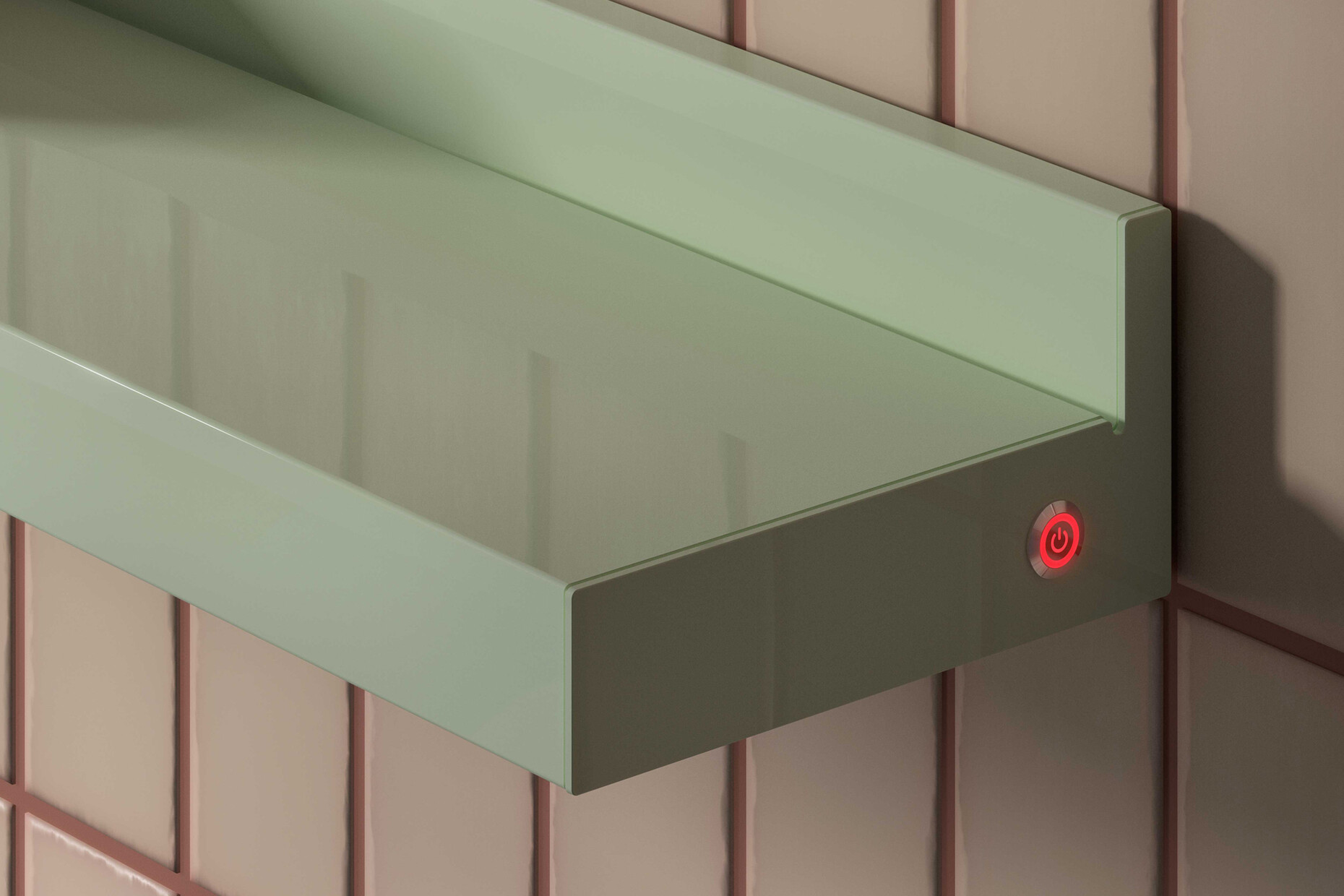 Die funktionalen und gestalterischen Möglichkeiten von "Rift" werden nun mit "Rift/reverse" um zusätzliche Optionen bereichert. Der neue horizontal ausgerichtete Heizkörper dient gleichzeitig als beheizte Ablagefläche in Form eines Wandregals, das Ordnung ins Badezimmer bringt und sich unauffällig ins Gesamtambiente integriert. Dank einer Halterung, die unterhalb des Regals angebracht ist, können auch Handtücher aufgehängt werden. Die längere Version von "Rift/reverse" kann zusätzlich mit einer organisch geformten Ablagefläche aus Holz bespielt werden, die sich flexibel auf dem Wandregal platzieren lässt. Sie bietet einen gestalterischen Kontrast zur funktionalen Strenge des Heizkörpers und Platz für Gegenstände, die nicht erwärmt werden sollen. "Rift/reverse" gibt es mit Elektrobetrieb. Die Bedienung und Regulierung erfolgt dabei über einen dezenten On-/Off-Schalter an der Schmalseite des Heizkörpers oder über ein Wireless-Thermostat. Aufgrund des minimalistischen Designs und der vielfältigen Nutzungsmöglichkeiten fügt sich "Rift/reverse" wie selbstverständlich in die unterschiedlichsten Raumszenarien ein und macht sowohl im Boutique-Hotel als auch im eigenen Badezimmer eine gute Figur.