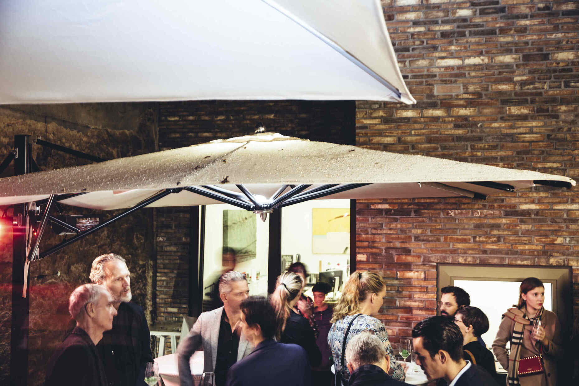 Der Place to be an diesem Abend war ohne Frage der lauschige Innenhof unter den Schirmen von TUUCI: Der Premiumhersteller von Sonnenschirmen und Cabanas mit Wurzeln in Miami stellte anlässlich des Summer Closing Cocktails von Stylepark eine exklusive Auswahl seiner Produktpalette zusammen. Bei feinem Fingerfood und Drinks trafen sich so Architekten, Designer und das Stylepark Team in entspannter Atmosphäre, um über aktuelle Projekte zu diskutieren, den Büroneubau zu erkunden und gemeinsam den Ausklang des Sommers zu begehen. Passenderweise ließen sich im Laufe des Abends auch die herbstlichen Regentropfen nicht lange bitten, so dass die Runde die Funktion des automatisierten Terrassenschirms MAX Cantilever von TUUCI in ihrer ganzen Bandbreite erleben konnte. Intuitiv zu bedienen, lässt sich dieser schnell und komfortabel über die Drucktastenoberfläche ausfahren und öffnen. Ein weiterer Knopfdruck aktiviert das angenehm indirekte LED-Licht sowie die Funktion der beiden Heizstrahler.