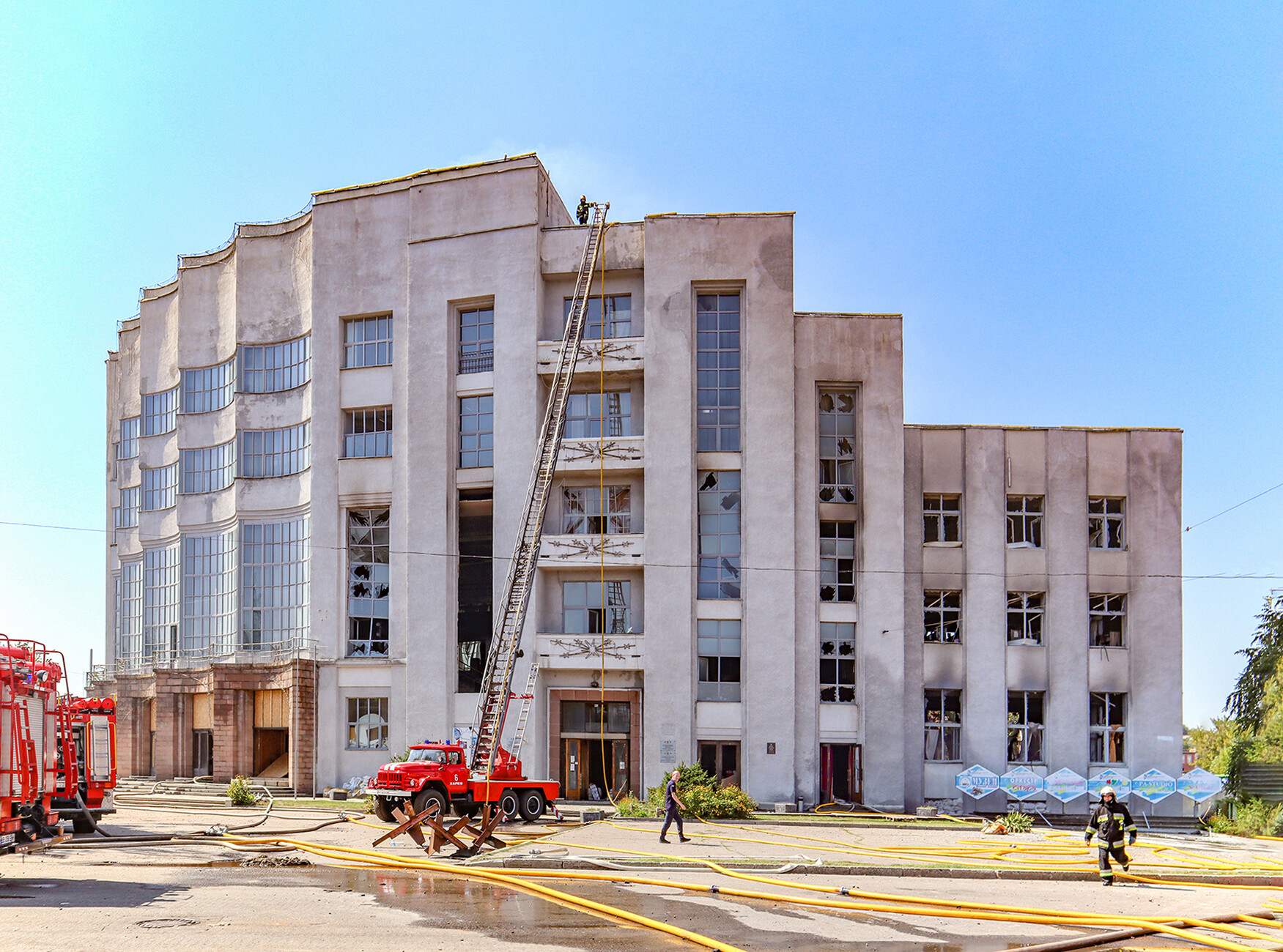 Philipp Meuser: Er ist im März und im August 2022 durch Raketen getroffen worden. Ich bin im November dagewesen und wollte mir die Schäden anschauen. Aber der Ort ist vom Militär gesperrt, man kommt leider nicht rein. Das Gebäude ist wohl ausgebrannt, aber das ist in Charkiw bei vielen Gebäuden so. Es bleibt schwierig, wenn die Menschen frieren, hungern und kein Dach über dem Kopf haben, über Denkmäler, über Baukultur zu sprechen. Doch ich glaube, das ist für Identität der Menschen vor Ort und auch für unsere europäische Identität ganz wichtig. Die Ukraine ist ein Land mit einem hohen Bildungsgrad. Die Menschen kennen diese Architektur, und sie können sie wertschätzen.