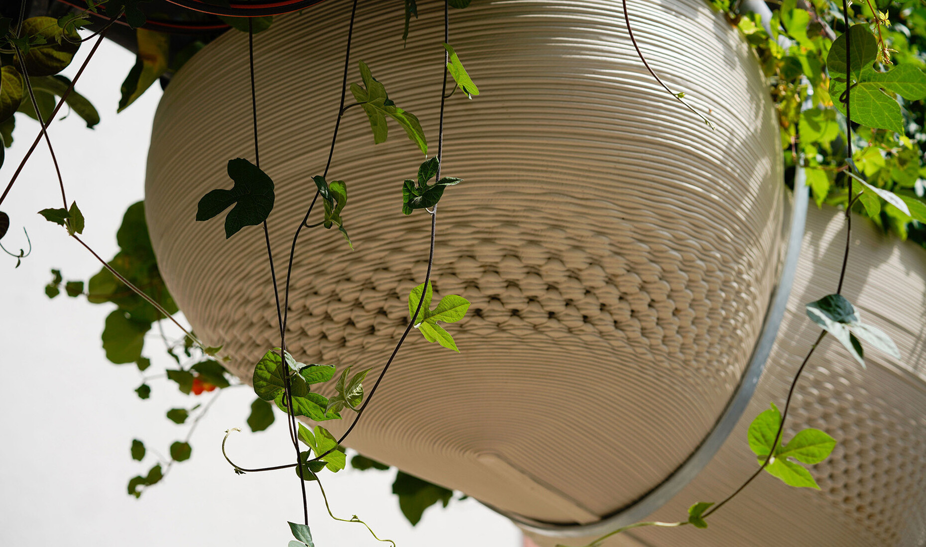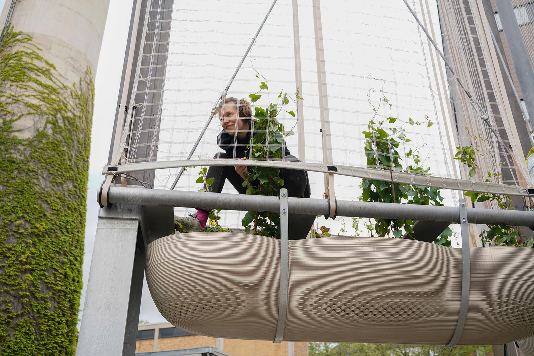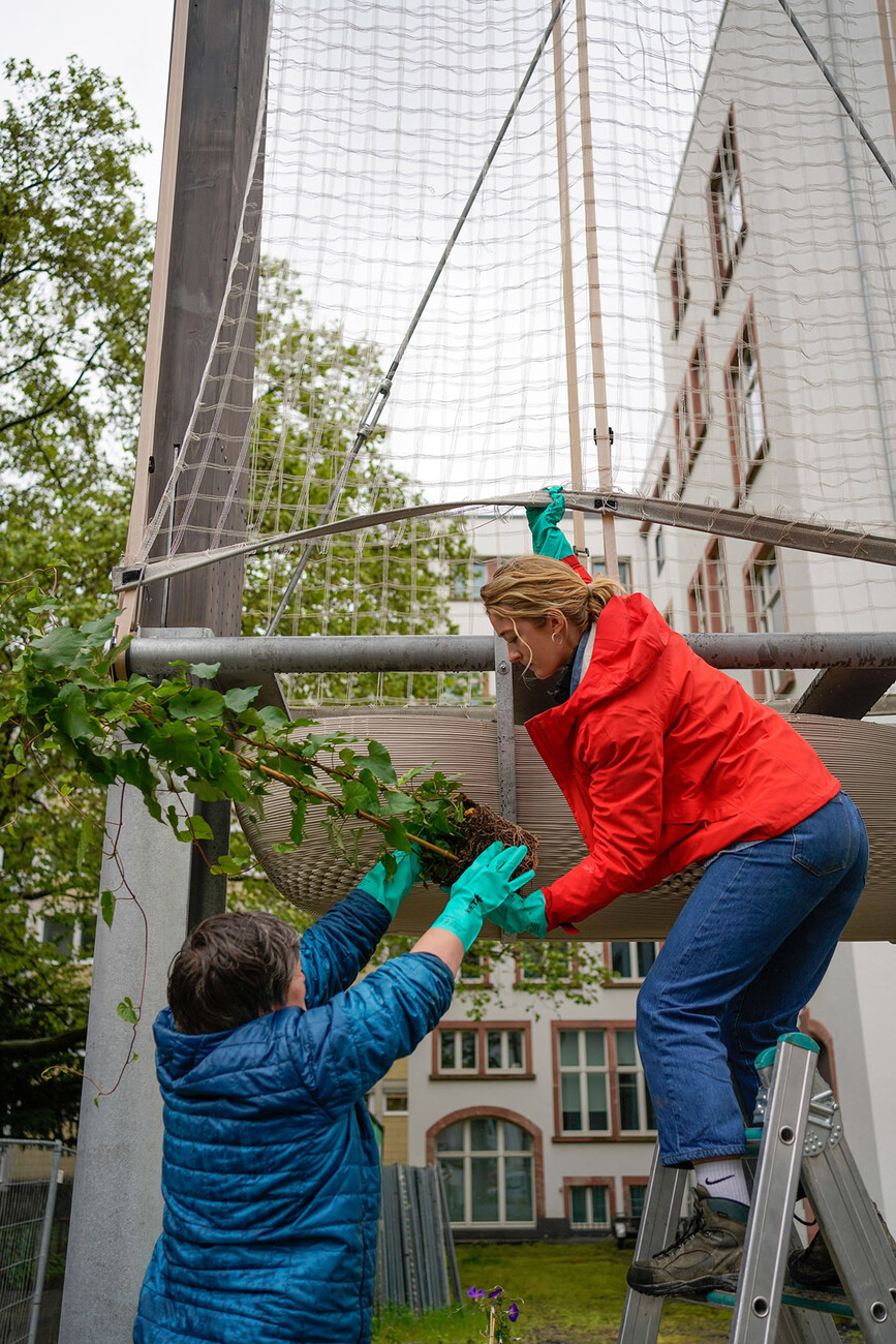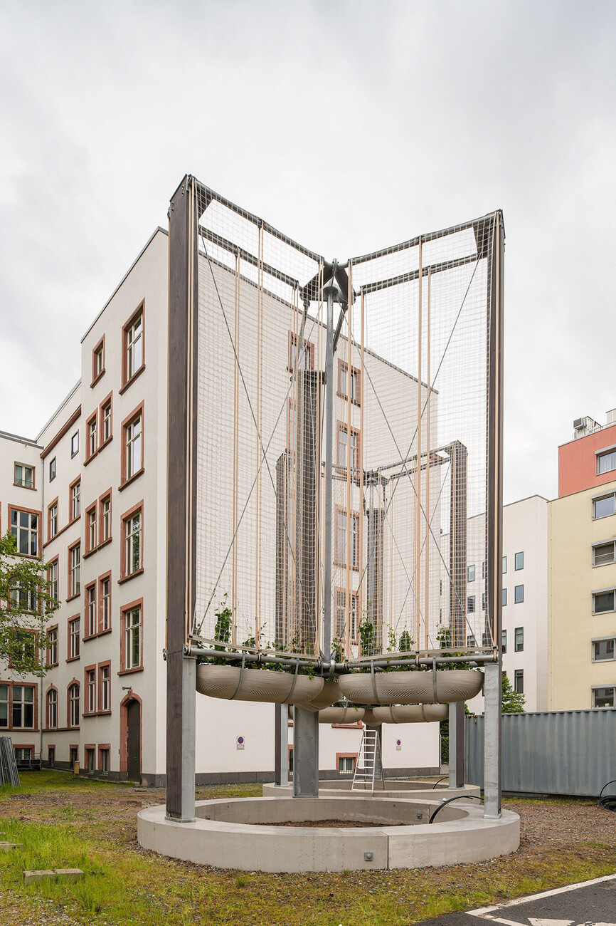 Und so zögerten die beiden Gründerinnen nicht lange, sondern holten sich PartnerInnen mit viel Expertise ins Boot. Malte Just von Just Architekten war von Beginn an ein wichtiger Partner, wenn es um die Schnittstellen zu Städtebau und Architektur ging. Für das ausgefeilte Tragsystem konnte das renommierte Ingenieurbüro Bollinger+Grohmann gewonnen werden. Dieter Gaißmayer, eine Legende unter den deutschen PflanzenexpertInnen, zeichnet für die Recherche der passenden Rankpflanzen verantwortlich. Bei der Entwicklung der Pflanzkübel und der mechanischen Details der Anlagen unterstützte Stefan Diez mit seinem Team von Diez Office. "Als Nicola mich wegen dem Projekt angefragt hat, habe ich sofort zugesagt", erinnert sich Stefan Diez. "Ich kenne sie schon seit fast 20 Jahren und weiß daher, dass alles, was sie anpackt, Hand und Fuß hat. Und sie weiß, dass ich mich gerne mit Architekturelementen und systemisch-technischen Details beschäftige." Außerdem sei es ihm als Designer ein Anliegen, sich auch mit den zukünftigen Herausforderungen unserer Zeit auseinanderzusetzen. Um die Pflanzgefäße und die Netzbefestigung zu entwickeln, hat Stefan Diez intensiv mit Dieter Gaißmayer zusammengearbeitet. In seiner Gärtnerei haben sie Freiland-Tests mit verschiedenen Kletterpflanzenarten hinsichtlich Wurzelraum, Wasserbedarf und Windlasten gemacht. Die Pflanzgefäße bestehen aus recyceltem Kunststoff und werden im 3D-Druck produziert.