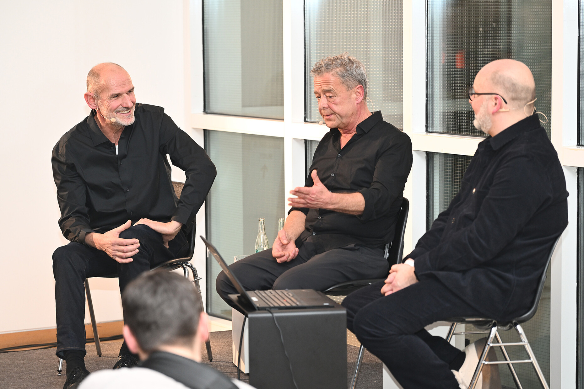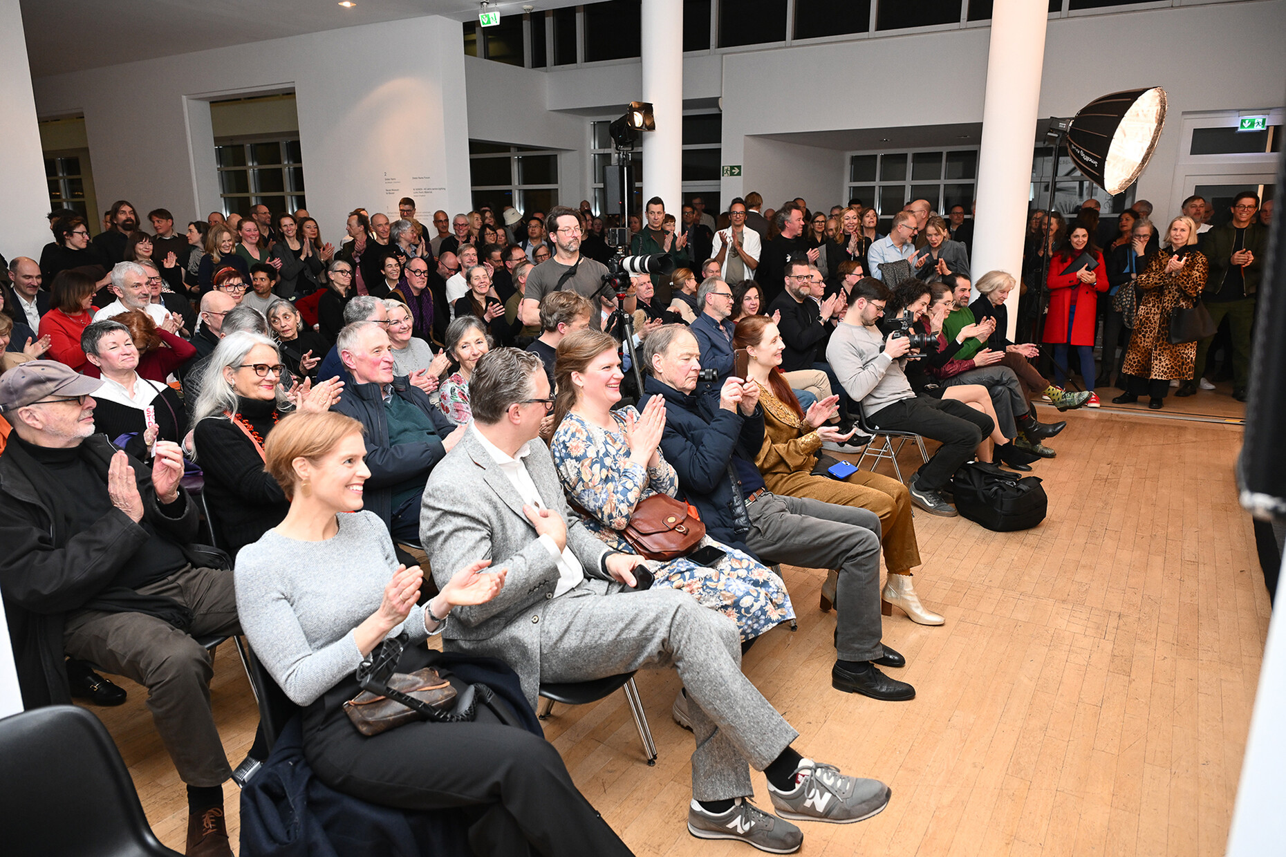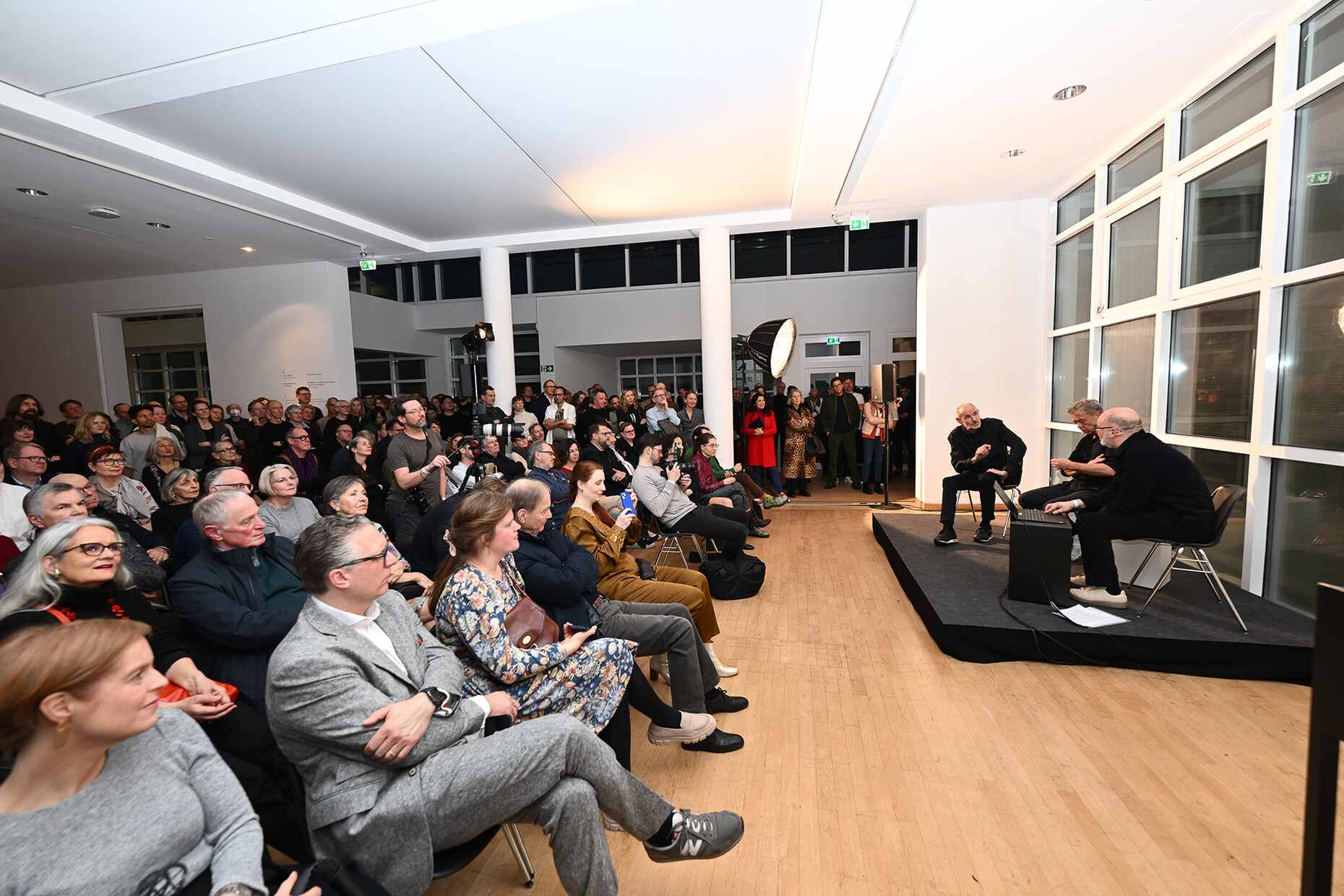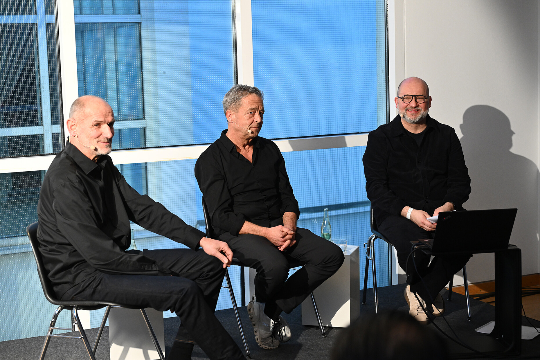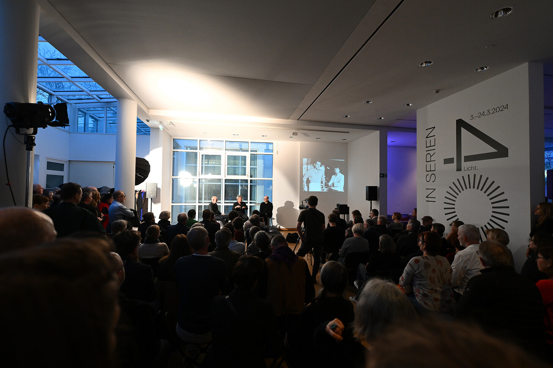Zum vierzigjährigen Bestehen präsentieren die beiden Designer, Gründer und Geschäftsführer Jean-Marc da Costa und Manfred Wolf dort ihre Erfolgsgeschichte in Form einer Retrospektive mit dem sprechenden Titel "IN SERIEN – 40 Jahre serien.lighting. Licht. Form. Material." Diese verlief nicht immer geradlinig, wie das Publikum – bestehend aus Fachkundigen und langjährigen BegleiterInnen des Unternehmens – in einem erfrischenden Talk erfahren durfte. Markus Frenzl, Professor für Design- und Medientheorie an der Hochschule München, moderierte die Unterhaltung. Changierend zwischen hochtechnischem Fachgespräch und Plaudern aus dem Nähkästchen berichteten da Costa und Wolf von anfänglichen Versuchen, langen Experimenten und Fehlschlägen – aber vor allem von gewitzten Ideen, glücklichen Fügungen und erfolgreichem Design, das sich immer an ihrer Vorstellung von Qualität und Ästhetik orientiert hat. Am Anfang sei es ihnen vor allem um die Materialität gegangen, nicht so sehr darum, das Licht perfekt zu leiten, resümieren die beiden.