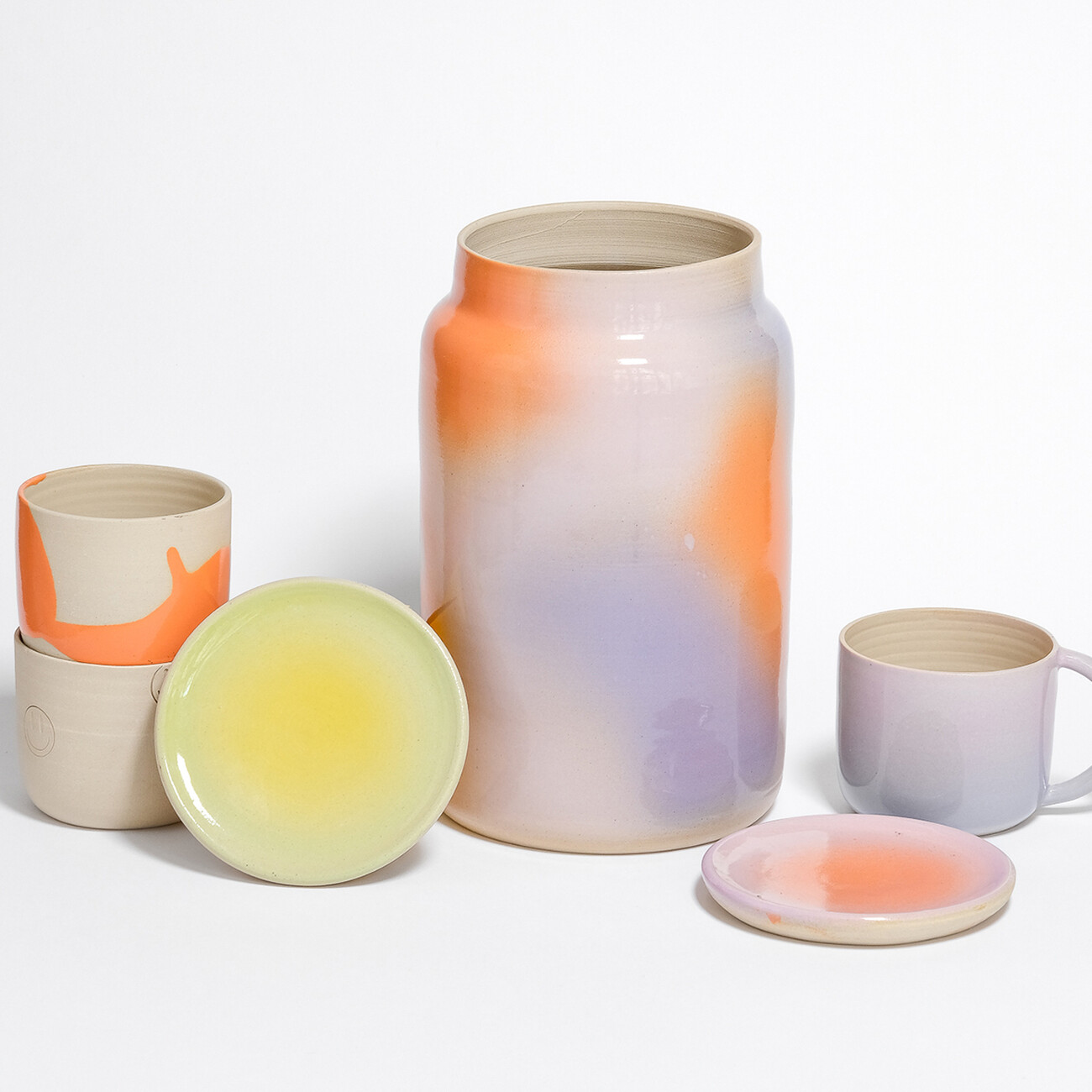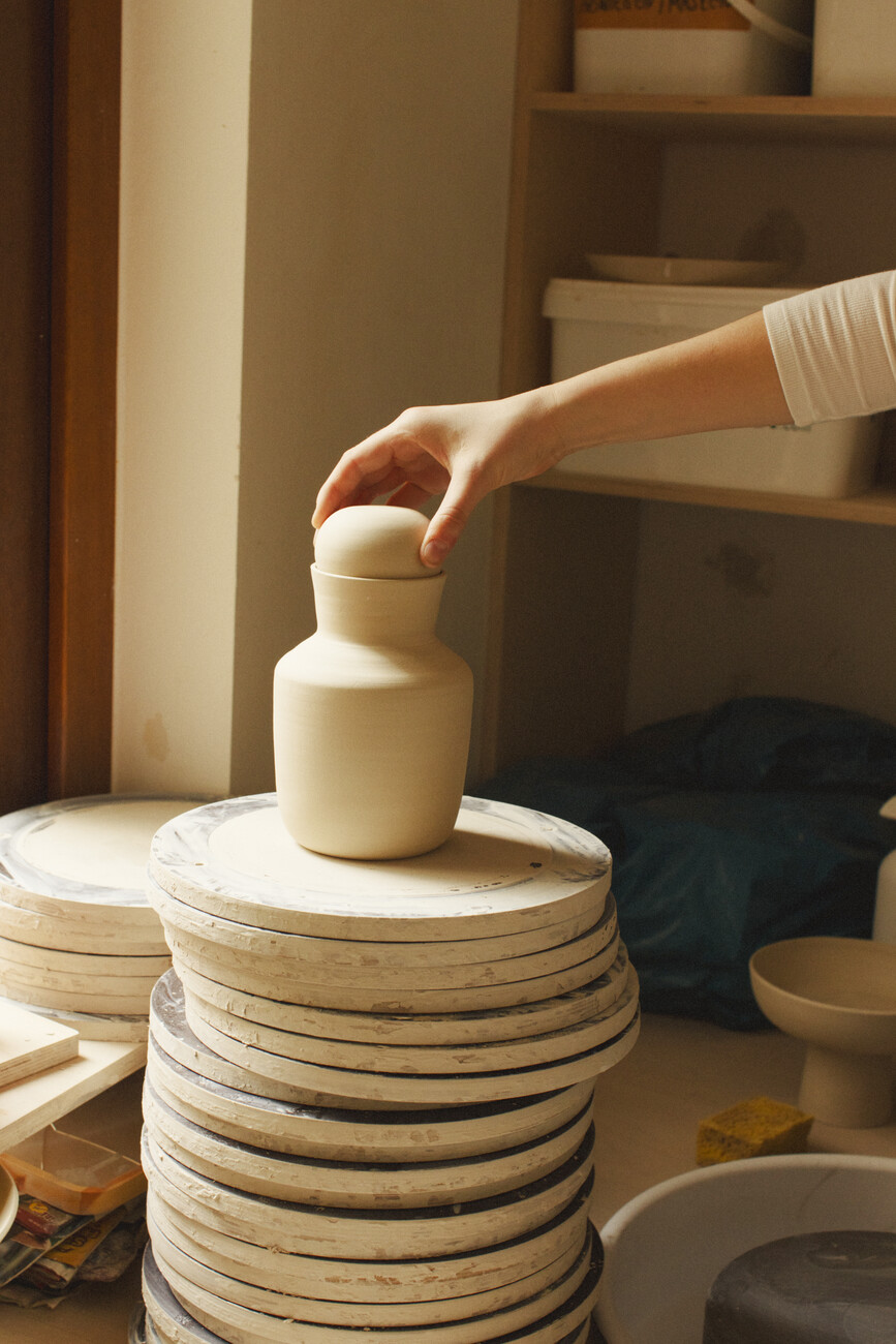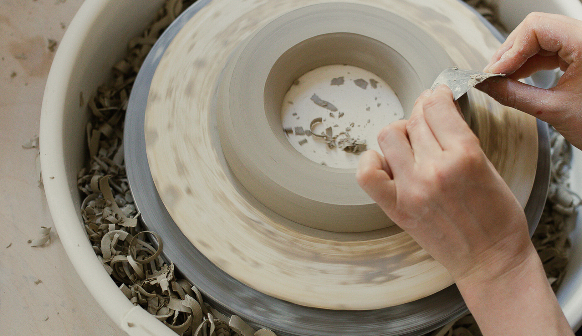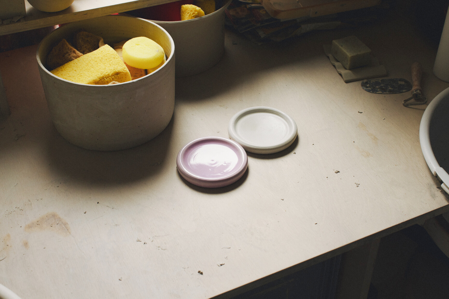 Wer schon einmal erlebt hat, wie aus einem einfachen Klumpen Ton auf der Töpferscheibe Drehung um Drehung eine Tasse oder Vase entsteht, der weiß: Das ist Meditation pur. Ton hat etwas sehr Ursprüngliches, etwas Elementares. Auf viele Menschen wirkt der Umgang mit diesem Material erdend und zentrierend. Auch Viola Beuscher ist über diese Eigenschaften zum Töpfern gekommen: Die gebürtige Fuldaerin studiert 2014 Journalismus und Politikwissenschaft und steht kurz vor dem Abschluss ihrer Bachelorarbeit, als sie in einen Unfall verwickelt wird. In der Folge wird sie berufsunfähig – mit gerade einmal 22 Jahren. Heilung findet sie unter anderem in der intensiven Beschäftigung mit Ton. Zweieinhalb Jahre lang töpfert sie fast täglich – zunächst im Rahmen der Therapie, später zu Hause. Rückblickend war das die Zeit, in der sie die Grundlagen für “viola beuscher ceramics” legte – und für alles, was seither daraus entstanden ist. “Das A und O im Handwerk ist, dass man die Zeit hat, um zu üben, zu üben, zu üben”, sagt sie. “Durch den Unfall hatte ich das Privileg, diese Zeit zu haben. Auch wenn es sich damals nicht wie ein Privileg angefühlt hat.” Als Viola Beuscher 2017 langsam ins Leben zurückfindet, steht sie vor der Frage, was sie beruflich machen will. Ein Studium kann sie sich nicht mehr vorstellen. Die Anfrage befreundeter Gastronomen kommt da gerade recht. Zum ersten Mal fertigt sie eine Serie von Tellern und Schalen nach individuellen Wünschen an. Es ist der Beginn ihrer Selbstständigkeit.