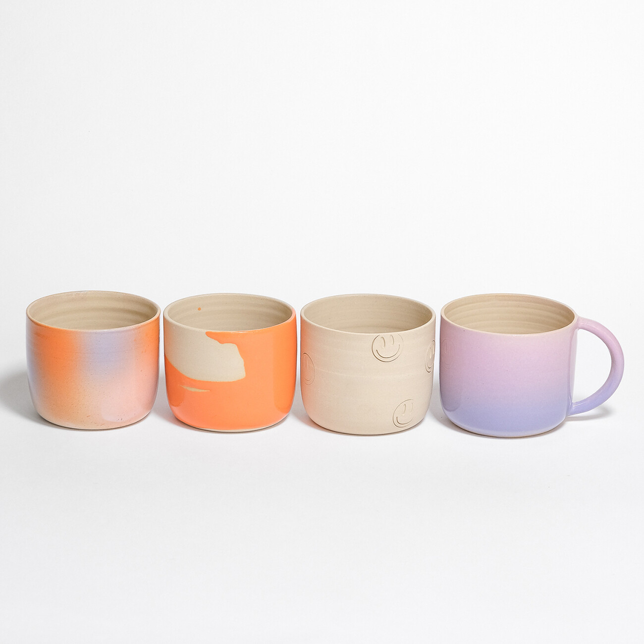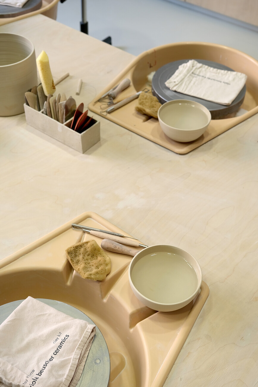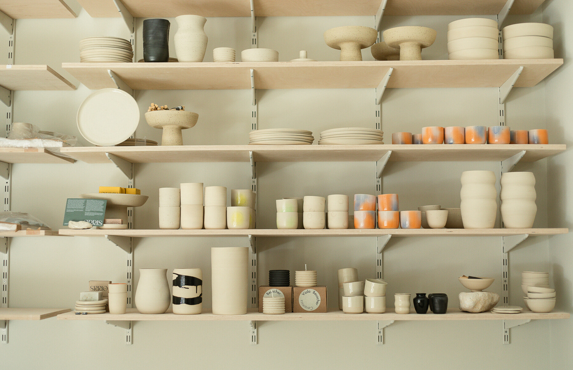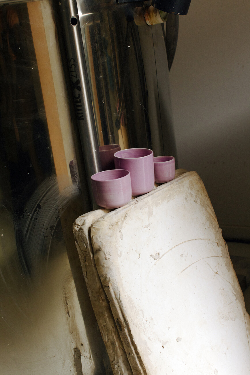 Heute macht der Online-Shop von “viola beuscher ceramics” rund 60 Prozent des Gesamtumsatzes aus. Unter den 20.000 Instagram-FollowerInnen ist ein regelrechter Andrang auf die Keramiken ausgebrochen. Neue Kollektionen, wie die limitierte Happy Edition, sind oft innerhalb weniger Stunden ausverkauft. Auch die Plätze in ihren Kursen namens “Clay Classes” sind heiß begehrt. Um der hohen Nachfrage gerecht zu werden, arbeiteten im Jahr 2021 zeitweise 12 feste und freie MitarbeiterInen in der kleinen Töpferei. Heute besteht das Team wieder aus sechs Personen. Den Großteil der Produktion übernimmt Beuscher selbst. Ihr Stil ist unverwechselbar: pur, weil die Materialität im Vordergrund steht. Minimalistisch, weil nur sehr reduziert Glasuren verwendet werden. Elegant, weil alle Becher und Schalen dünnwandig gedreht werden.