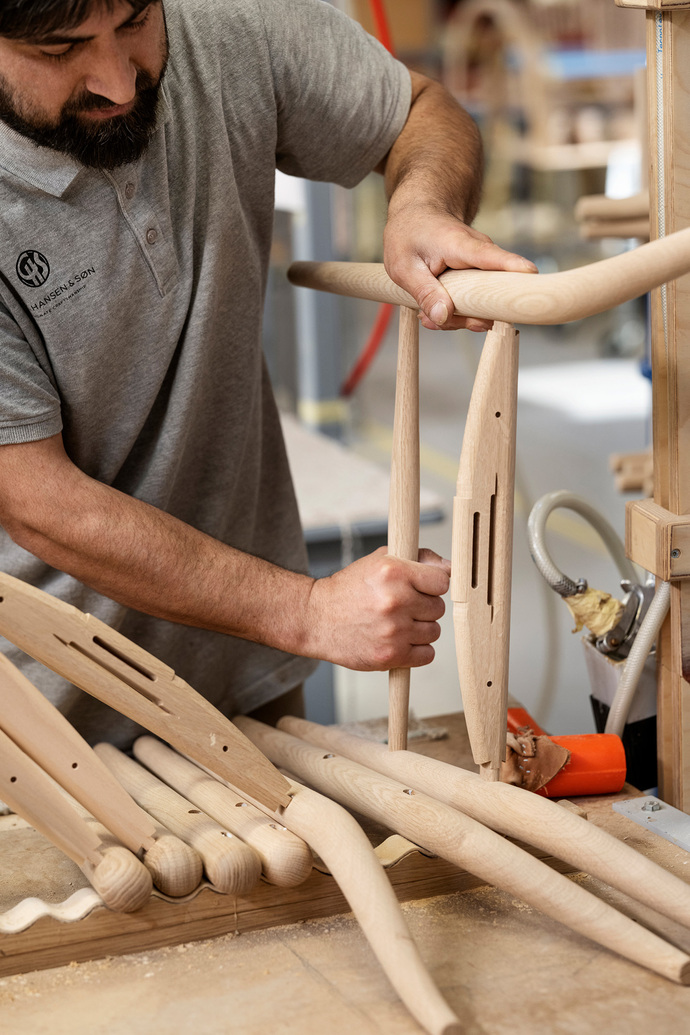 Knud Erik Hansen: Zuerst einmal sind wir ein Familienbetrieb: Carl Hansen & Son wurde von meinem Großvater gegründet und befindet sich seit 114 Jahren in Familienbesitz. Es gibt ein sehr starkes Familienethos und einen sehr offenen Austausch – auch mit unseren Angestellten, obwohl bei uns mittlerweile über 600 Menschen arbeiten.