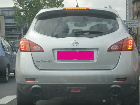 Rückseiten lassen sich, im ersten Schritt noch gänzlich ohne Marken-, Modell- und Design(er)zuordnung, in unterschiedliche Sicht-Typen klassifizieren. Ausgehend von einem Blick durch die Windschutzscheibe und dem eigenen Fahrersitz in einem Mittelklassewagen verankert, teilt sich die Welt der Vorausfahrer in solche, die jegliche Sicht durch ihre Heckscheibe versperren, in diejenigen, durch die man mit viel Mühe und einigen Klimmzügen im eigenen Fahrersitz doch einen Eindruck von der Dichte des vorausfahrenden Verkehrs erhalten kann, und in optimal transparente, durch die auch der übernächste Verkehrsteilnehmer und dessen Reaktionen, sprich Bremslichter, noch bemerkt werden können. Einfache Faustregel: Flach und rund liegen hier vor hoch(gebockt) und eckig, es empfiehlt sich für eine günstige eigene Stressbilanz zu Letzteren genügend Abstand zu halten. Insgesamt scheint zu Beginn der Rückseitenbetrachtung die Aufmerksamkeit, Sullivan sei Dank, auf die Funktionalität gelenkt: Leuchten die Bremslichter, das Rücklicht, die Blinker - und wenn ja in welcher Intensität? (Ur)instinktive Gefahrenabwehr punktet vor Designscan. Der folgt, zumindest bei kenntnisreichen Stromlinienanbetern, auf dem Pedal bzw. zeitgleich dem Emblem: LED-Technologie, die vor allem bei Audi zum Markenzeichen geworden ist? Ein Stier, Löwe oder Pferd? Schmale oder breite, runde oder ovale Blinker? Buchstaben oder Ringe? Herkömmliche Endschalldämpfer oder Turbo-Sportversion? Wenn es sich um einen kleinen roten Rennflitzer handelt, könnte es der neue „Abarth 695 Tributo Ferrari" sein, den die Italiener in Frankfurt präsentieren werden. Und sollte jemand bereits eine Erscheinung gehabt haben, die mit acht (!) Auspuffrohren zum Schatten auf der Überholspur wurde, dann haben die im Internet kursierenden Gerüchte um eine Bugatti-Studie zum 100-jährigen Bestehen des Unternehmens wohl Gestalt angenommen. In diesem Fall beeinflusst die imposante Rückseite das Handeln - seinen eigenen Geschwindigkeitsrausch würde man an dieser eher nicht messen.