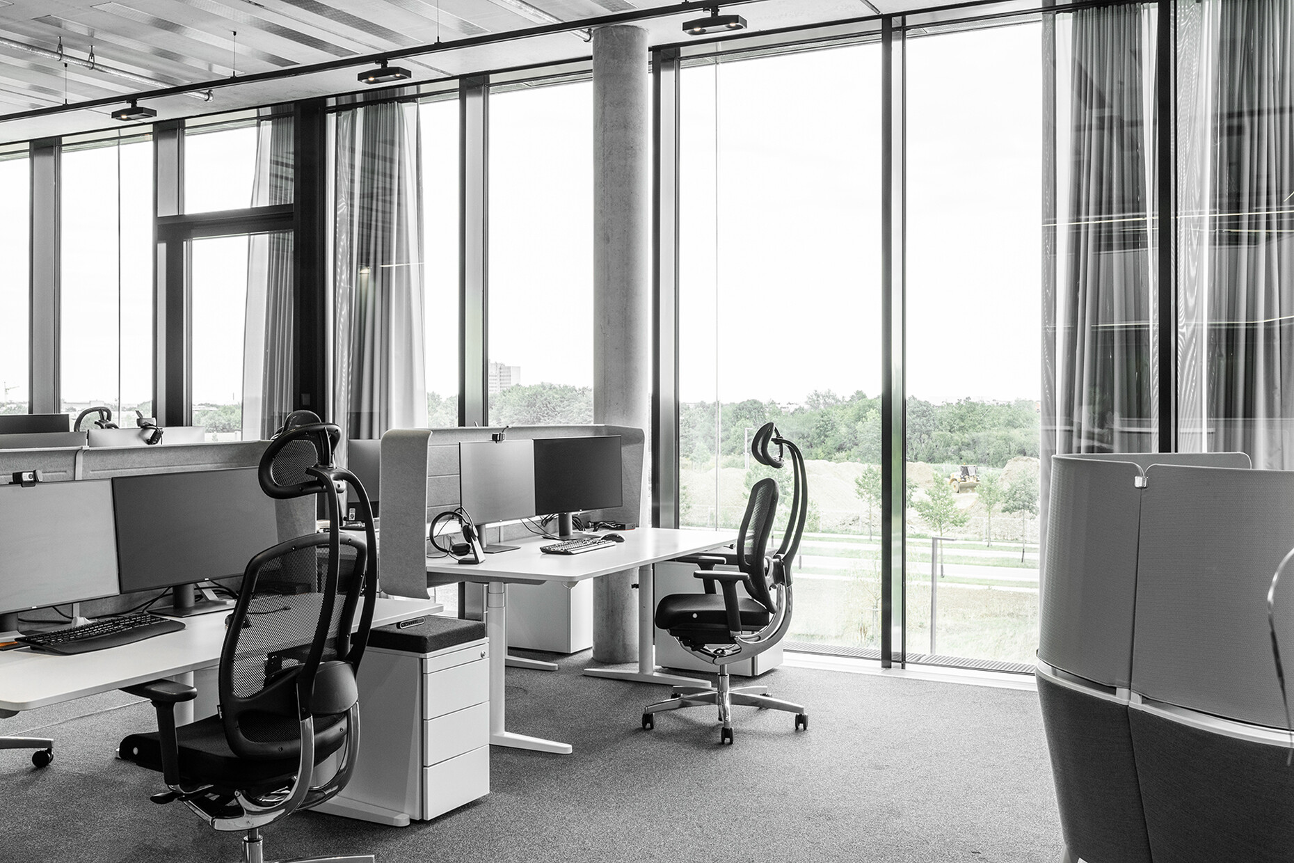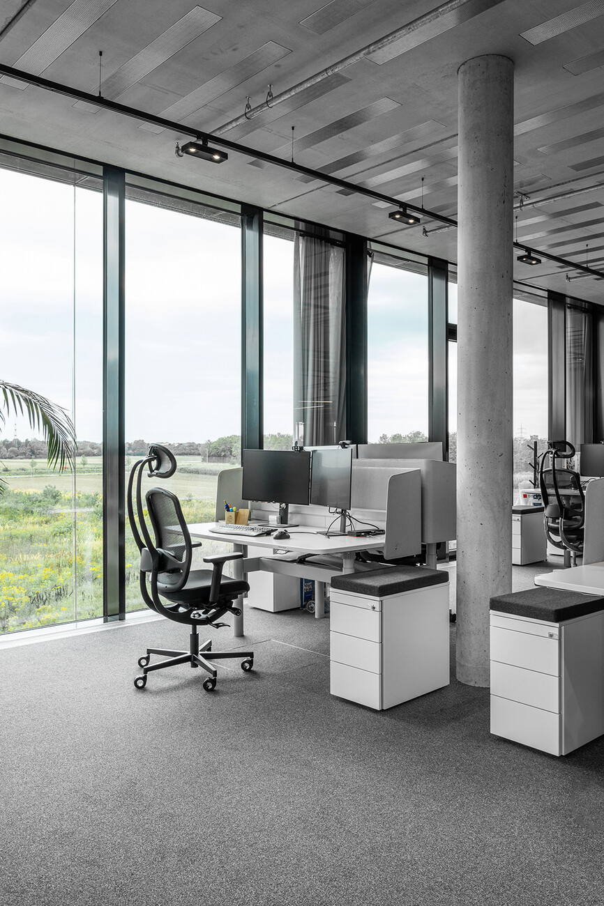Mit der neuen "AluMedic Black Edition" hat Wagner Living aktuell eine Modellvariante kreiert, die eine ideale Ergänzung bietet: Die Struktur wurde auf das Wesentliche reduziert und erhält somit einen futuristischen Ausdruck. Alle Komponenten sind in matt-schwarz gehalten und auf das Wesentliche reduziert. Somit passt der Stuhl in jede Office-Umgebung und ist dadurch sehr flexibel einsetzbar. Wie eindrucksvoll die schlanke Struktur der "AluMedic Black Edition" wirkt, zeigt die Ausstattung der Büroräume der Softwarefirma Baramundi in Augsburg. Der von Henn Architekten entworfene Bau zählt zu den Pilotprojekten des neuen Augsburger Innovationsparks. Ganz im Sinne des neuen Arbeitens ist die 13.250 Quadratmeter große Fläche für wechselnde Aufgaben flexibel nutzbar und bietet dem Team zudem einen Fitnessraum und ein Café. Der Wechsel aus gläserner Doppelfassade, homogener Betonelemente und der zahlreichen Vorhänge, die sowohl als Verschattung wie als Raumteiler und Schalldämpfer dienen, bietet eine zeitgemäße Büroeinrichtung. Die "AluMedic" Familie von Wagner Living passt ideal in diese Atmosphäre und zeigt beispielhaft, wie Design, Bewegung und Gesundheit in einem Produkt kombiniert werden können. (am)