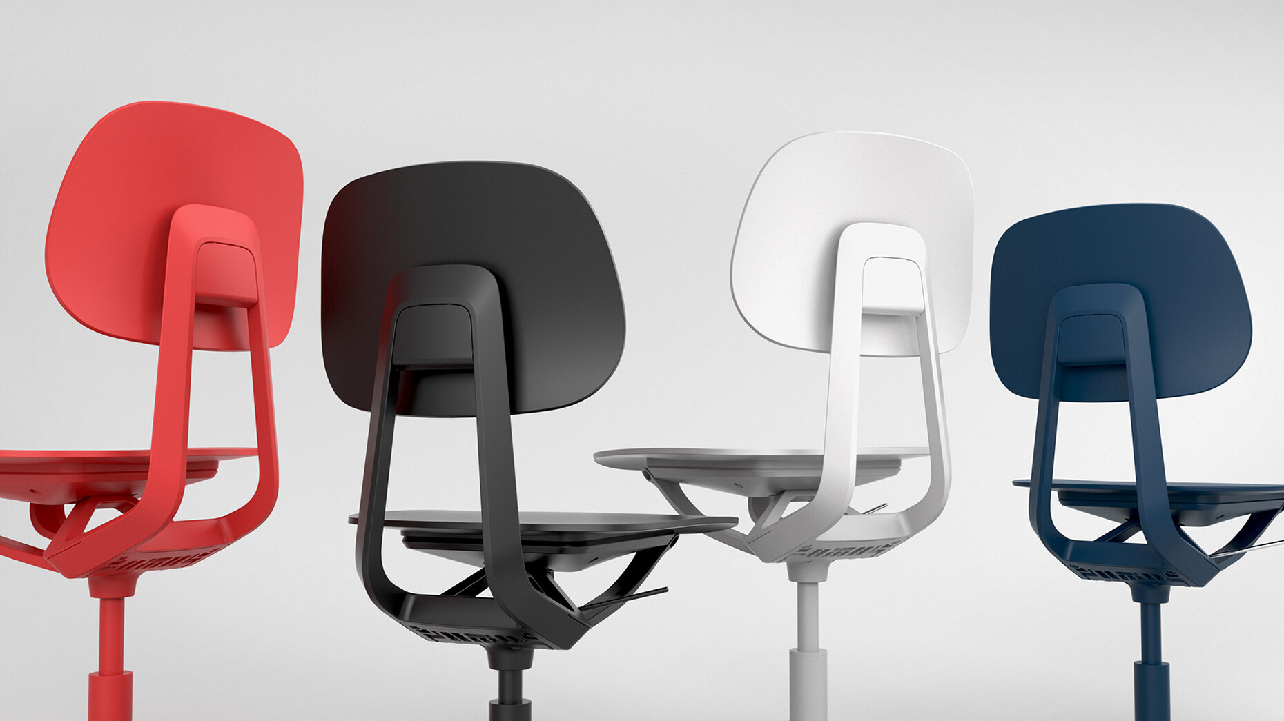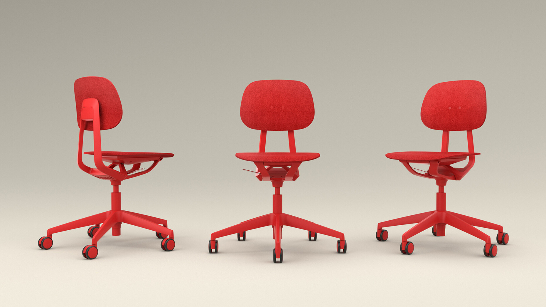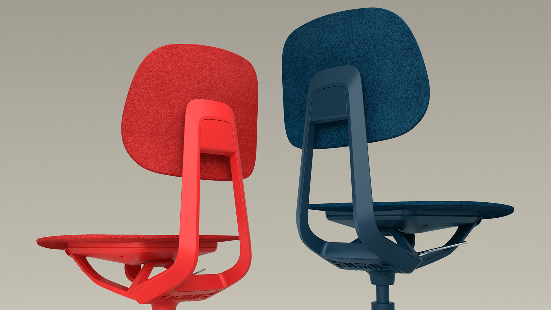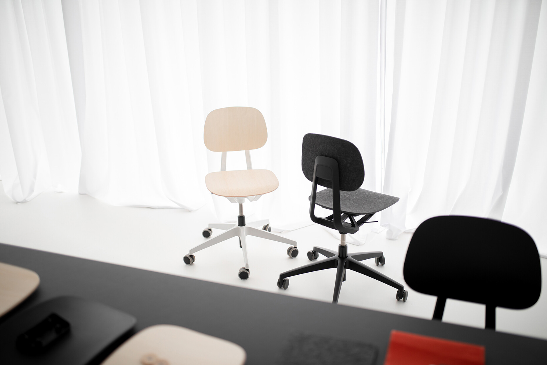 Höchste Effizienz, in der Funktion wie hinsichtlich des Aufbaus: Dank dem modularen Ansatz kann jedes Bauteil des Drehstuhls flexibel ausgetauscht werden. "Das System ist nach oben offen, die Bauteiltrennungen sind so gelegt, dass sie entsprechend den jeweiligen Marktanforderungen adaptiert werden können", erklärt von Boetticher. "Der 'S2' ist für einen Bürostuhl superleicht und das ist eigentlich der nachhaltigste Ansatz. Umso weniger Material das Design braucht, umso geringer ist der Aufwand in allen Schritten", sagt er. Parallel zur Form ist der Lebenszyklus des Stuhls auch im Material bereits mitgedacht – in der Herstellung werden keine Kleber oder unnötige Kunststoffbauteile verwendet. Elemente, die mit Glasfaser verstärkt werden müssen, bestehen zum größten Teil aus Rezyklat, sprich aus recyceltem Material. Alle weiteren Bauteile sind ohne Faseranteile gefertigt, um sie zu 100 Prozent recyceln zu können. "Kunststoff kann sehr nachhaltig sein, wenn man das Produkt sortenrein anlegt. Wir geben alles was wir produzieren auch wieder in den Kreislauf zurück", so Peter Wagner. Das recycelte Polymer, das Wagner Living als Basis für die Fertigung des "S2" dient, stammt dabei von lokalen Zuliefererbetrieben im bayrischen Umland – "einmal um das Haus herum", wie Peter Wagner sagt. Umweltschonend im Material, klar in der Form, modular im Aufbau und mit dem dreidimensionalen Dondola-Sitzgelenk versehen: Der "S2" ist bis ins letzte Detail ausgeklügelt und fördert parallel die Rückengesundheit – ein Zusammenspiel, das in jeden Arbeitsraum passt. Für die erste Edition wird der "S2" in einer Auswahl an Farben von Weiß und Schwarz bis Rot und Blau angeboten.