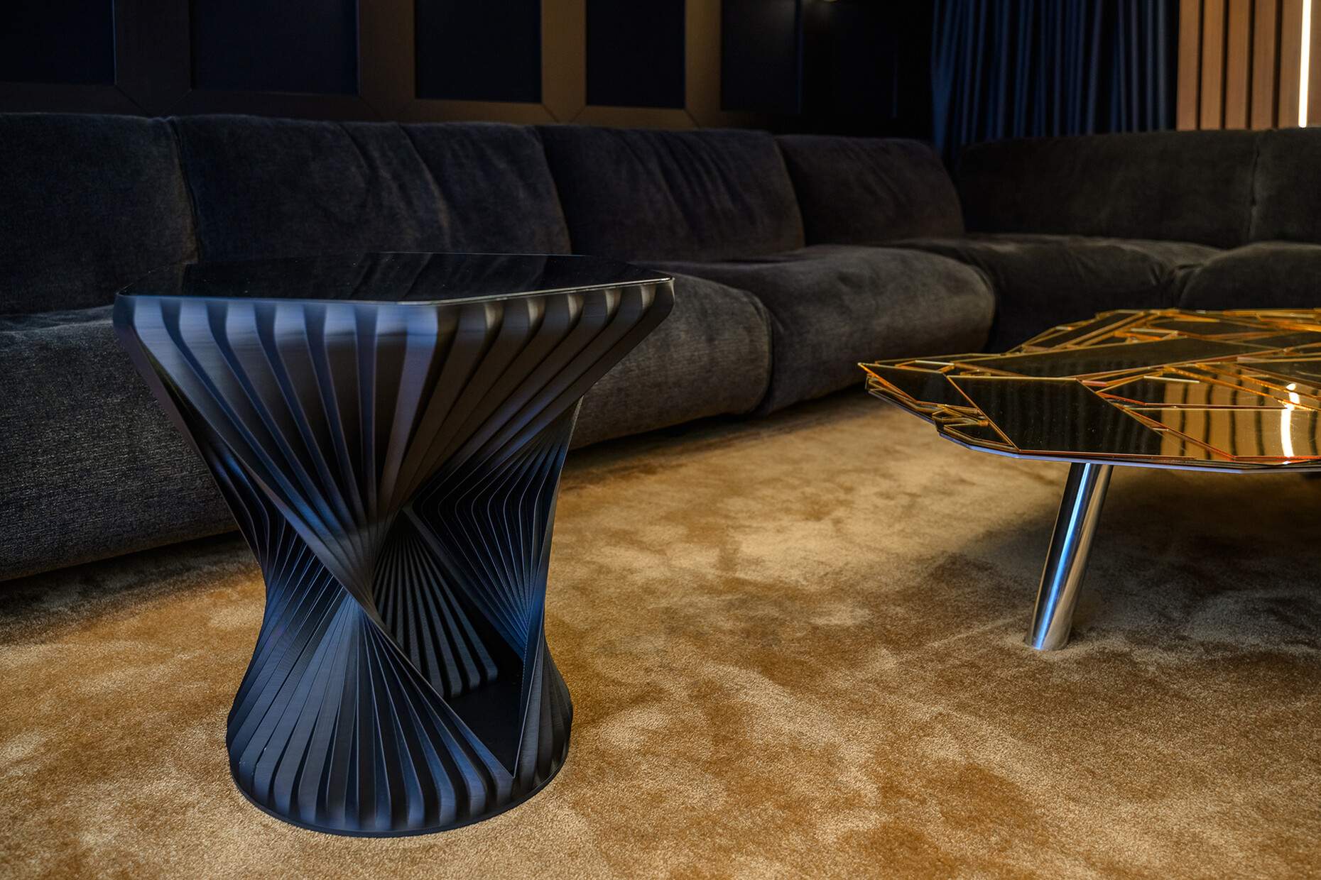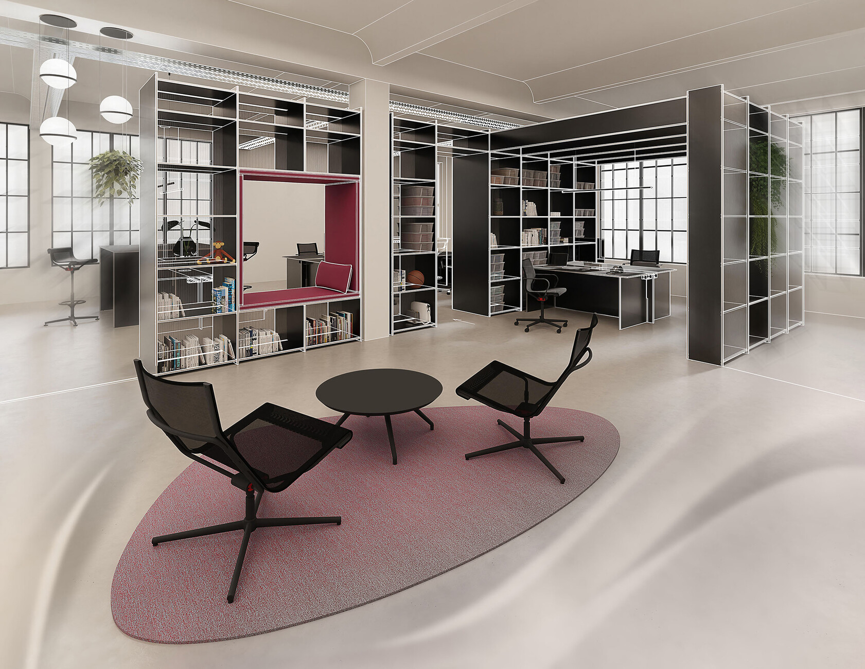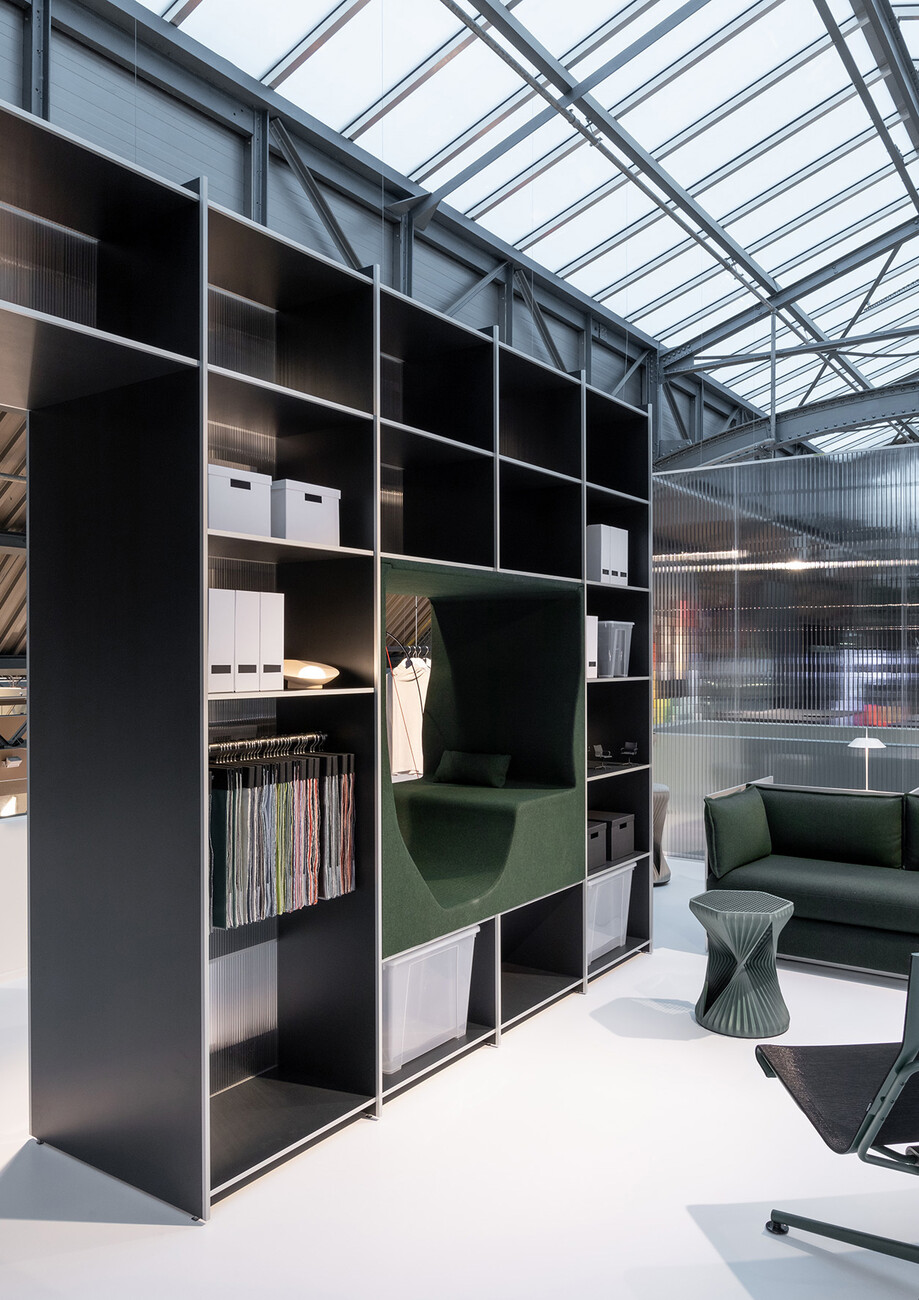 Für das richtige Licht im mobilen Schauraum sorgt indes die Tisch- und Deckenbeleuchtung von Heavn – Human Centric Lighting, während man sowohl auf dem "d1" Office Chair mit dreidimensional beweglichen Dondola® Sitzgelenk von Stefan Diez, wie auf dem "W-Lounge Sofa Mini" von Steven Dahlinger und dem "W3D" Hocker Platz nehmen kann, der in Kooperation mit Hadi Teherani entwickelt wurde. Dieser wird mit dem 3D-Druckverfahren gefertigt.