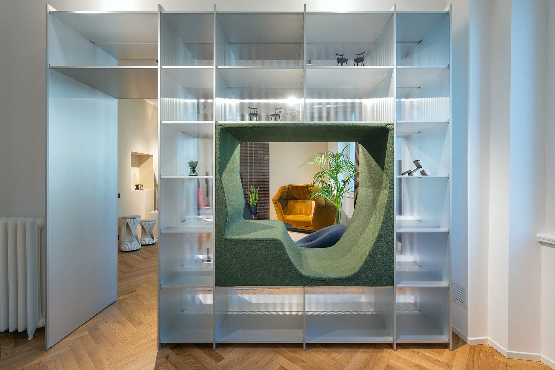 Die Kulisse dafür ist einzigartig: Das Raumkonzept nach Maß "d2 bespoke interior system", entworfen von den renommierten Studios Gonzalez Haase AAS und Stefan Diez, kann in einem ikonischen Airstream Bambi aus dem Jahr 1962 oder auf den Flächen des Unternehmens in der Design Post erlebt werden. Der Wohnwagen als Mini-Showroom von Wagner, welcher wieder am Eingang der Post zu finden sein wird, wurde gemeinsam mit dem Stofflabel Fischbacher 1819 in ein wohnliches Hotelzimmer umgebaut: Dazu gehören die Prototypen "W-Kiss" und "W-Tire" sowie das "Nesting Sofa mini" von Steven Dahlinger. Ins rechte Licht gerückt werden diese dank der Kooperationen mit den smarten Leuchten Human Centric Lighting Technologie von Heavn – Human Centric Lighting und einiger ikonischer Tischleuchten von Vibia. (am)