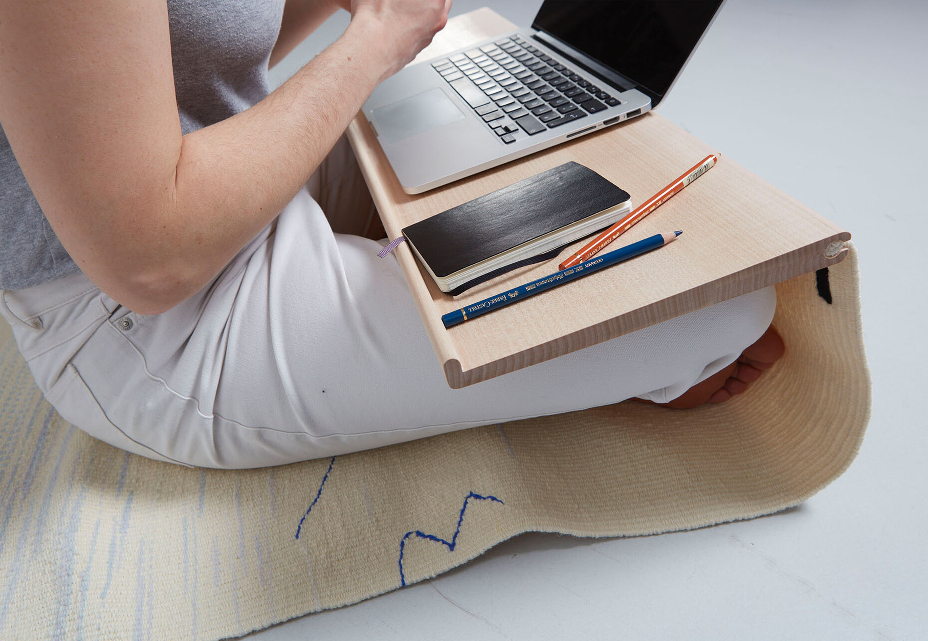 "Im Mittelpunkt der Aufmerksamkeit von 'Workspace in Progress' steht das Verhältnis einer jungen Generation zum Thema Arbeit. Die Entwürfe thematisieren die aktuellen Bedingungen der Arbeitsumwelt, wie Kreativität, Anpassungsfähigkeit und Flexibilität, und die damit verbundenen technologischen, ökonomischen und sozialen Herausforderungen", so die Kuratorin Matylda Krzykowski. Zusammen mit Wagner, Prof. Stefan Diez, den Studierenden der Klasse Industriedesign der Universität für angewandte Kunst Wien, Lina Fischer (Diez Office), dem Filmemacher Daniel van Hauten sowie Mirko Borsche vom Bureau Borsche hat sie eine hybride Schau auf die Beine gestellt, die als Status Quo und Blick in die Zukunft des New Work gelesen werden kann. Die StudentInnen von Stefan Diez haben im Rahmen des Projekts vielfältige Möbel, Systeme, Mode, Leuchten und Geräte entwickelt: Laura Dominici schafft beispielsweise mit "Magic Tapestry" einen flexiblen Arbeitsplatz, der Schreibtisch und Teppich miteinander verbindet und parallel als Wandobjekt dient. Steven Dahlinger zeigt mit "Nesting" ein Sofa, dessen Kopfteil sich zu einer schützenden Struktur formen lässt und Alice Klarwein hat mit "Performing Stages" eine modulare Struktur entworfen, die als flexibler Arbeitsplatz wie als Regal fungiert.