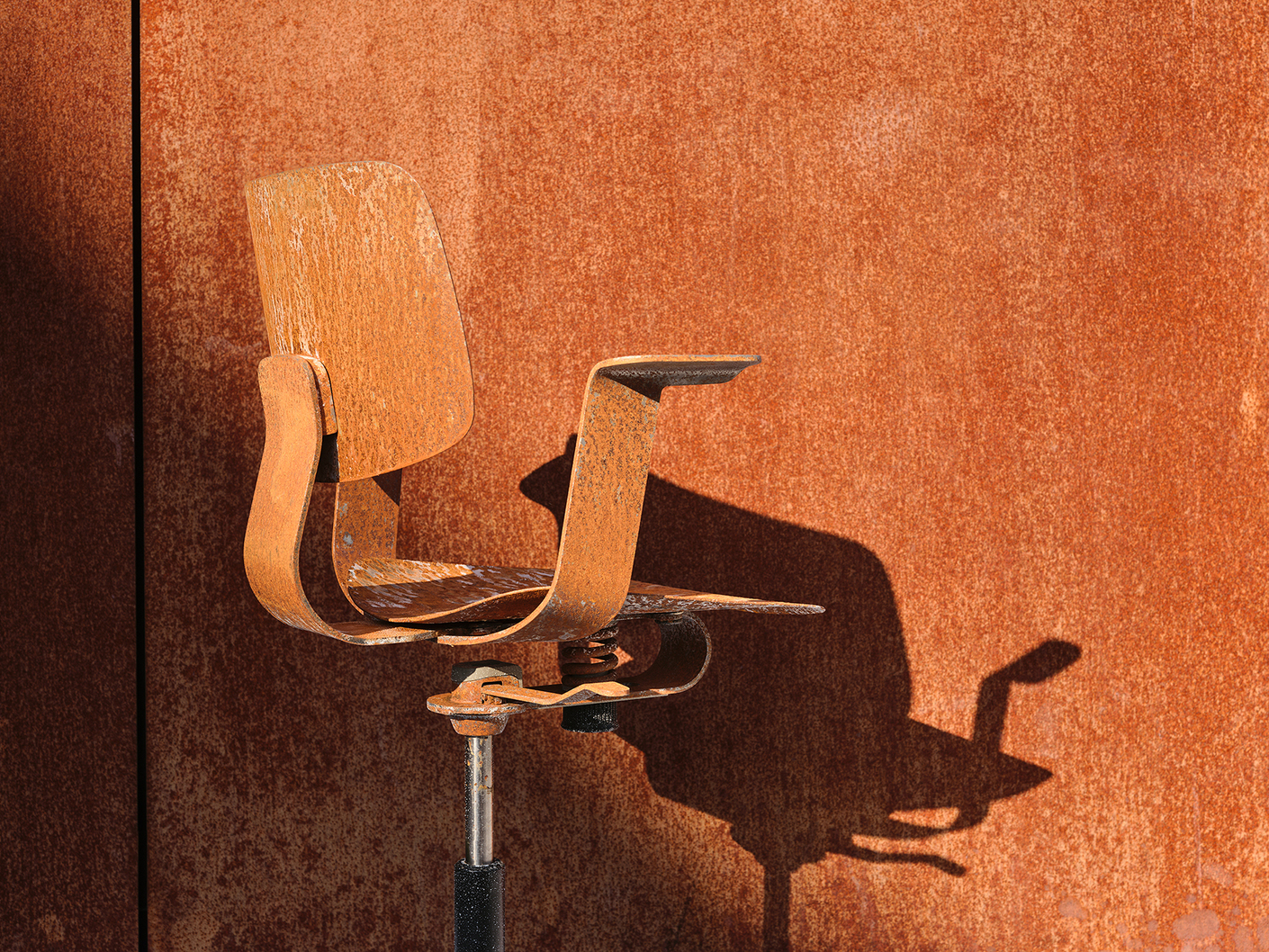 Für die Präsentation wird der "WiChair" von Wilkhahn in zwei Varianten gezeigt: transparent beschichtet, sodass alle Zeichen der Fertigung sichtbar bleiben, und mit einer Rostoberfläche, die den natürlichen Wandel des Materials unmittelbar nachvollziehbar macht.