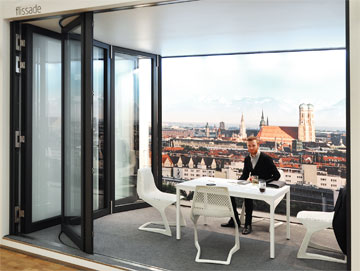 Faltbare Glasfassade am Stand von Schüco, Foto © Robert Volhard, Stylepark