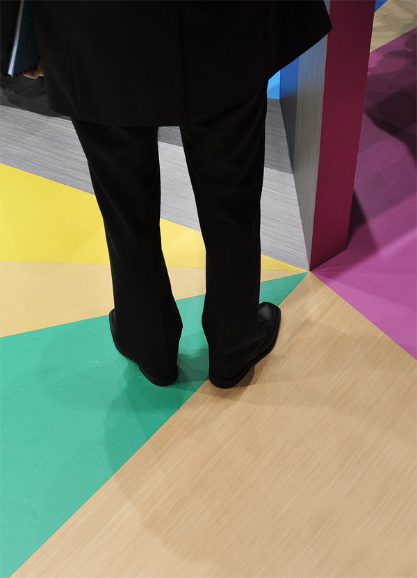 Der deutsche Hersteller Armstrong stattete seinen Messestand mit farbenfrohen Wand- und Bodenelementen aus, Foto © Robert Volhard, Stylepark