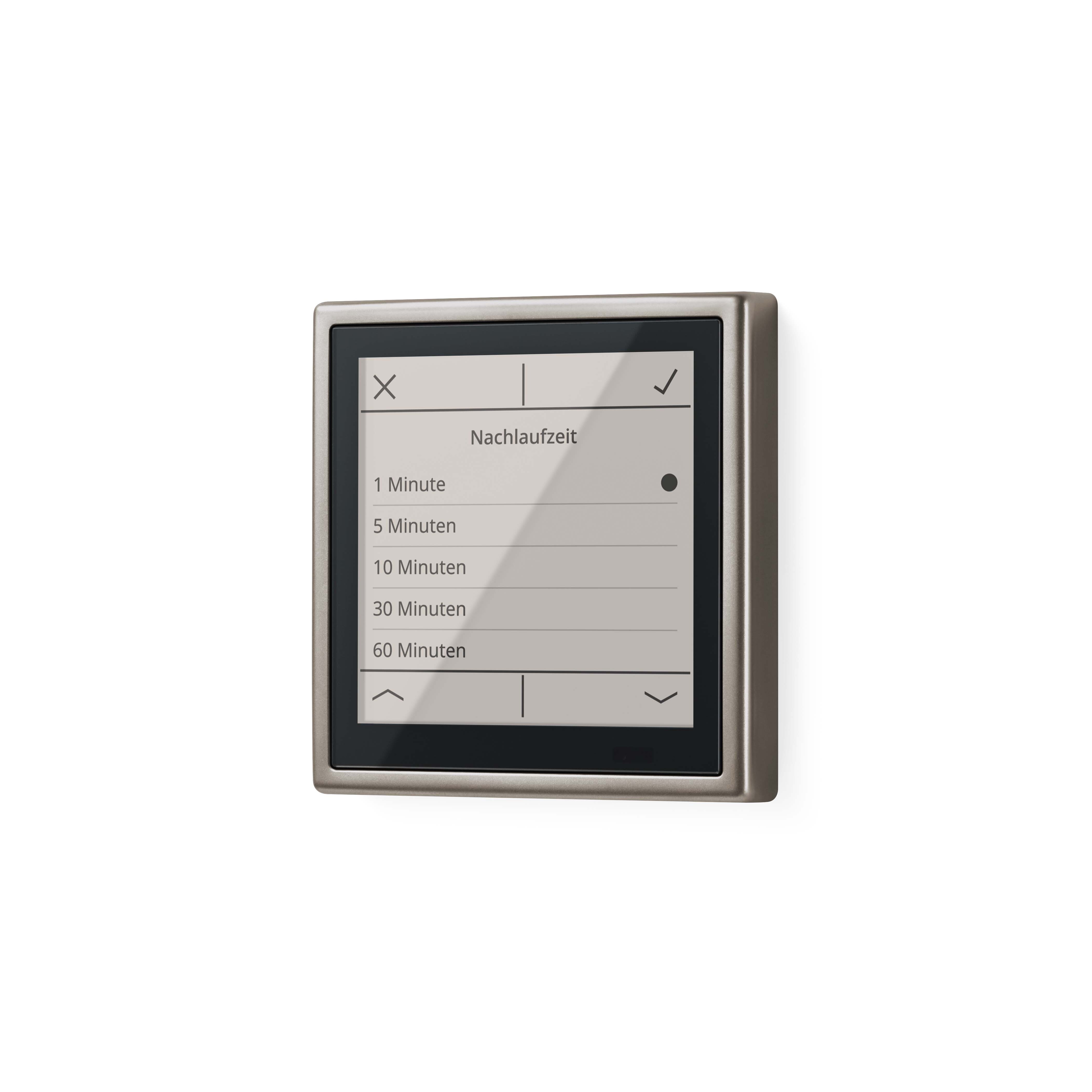 LS TOUCH covers up to 32 KNX functions per device. The thought behind the development of the smart room controller was to extend the classic KNX operation functionally and to bring it all into one device. Up to eight weekly timers allow users to control different functions at different times (e.g. in the evening, the lighting in the living room has the focus). Furthermore, they can change the times themselves, change favourites and adapt the menu: grid size, number of pages and layout can be adapted individually by the user.