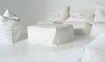 Cane, rattan core, Manila, rattan, abaca, bamboo, alginate, parchment, opus signinum, Malacca cane, black walnut, deal, aluminium, iron and sandstone: in Gervasoni collections both common and exotic materials (almost always used in their natural state) are combined in elementary shapes, characterised by the variations in surface textures; coarseness, roughness and unevenness (and smoothness, geometry and symmetrical repetition too) open up the furniture to space, air and light, working directly on the actual material, unexpectedly seen in its most commonplace and fortuitous (and hence more homely and comfortable) form.