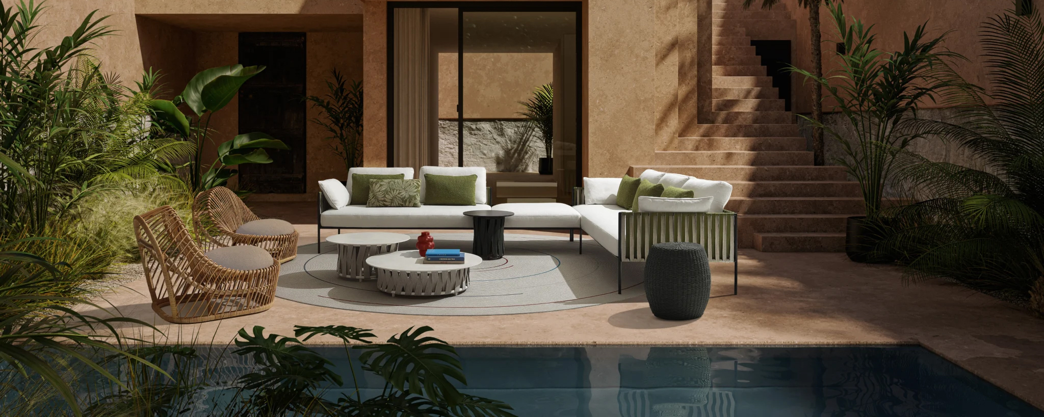 Nodo is fabric that becomes design, thread that transforms into comfort, texture that conquers the environment.A mix of stories, experiences and passions that gives life to coordinated seats and furnishing accessories for the contemporary outdoors.