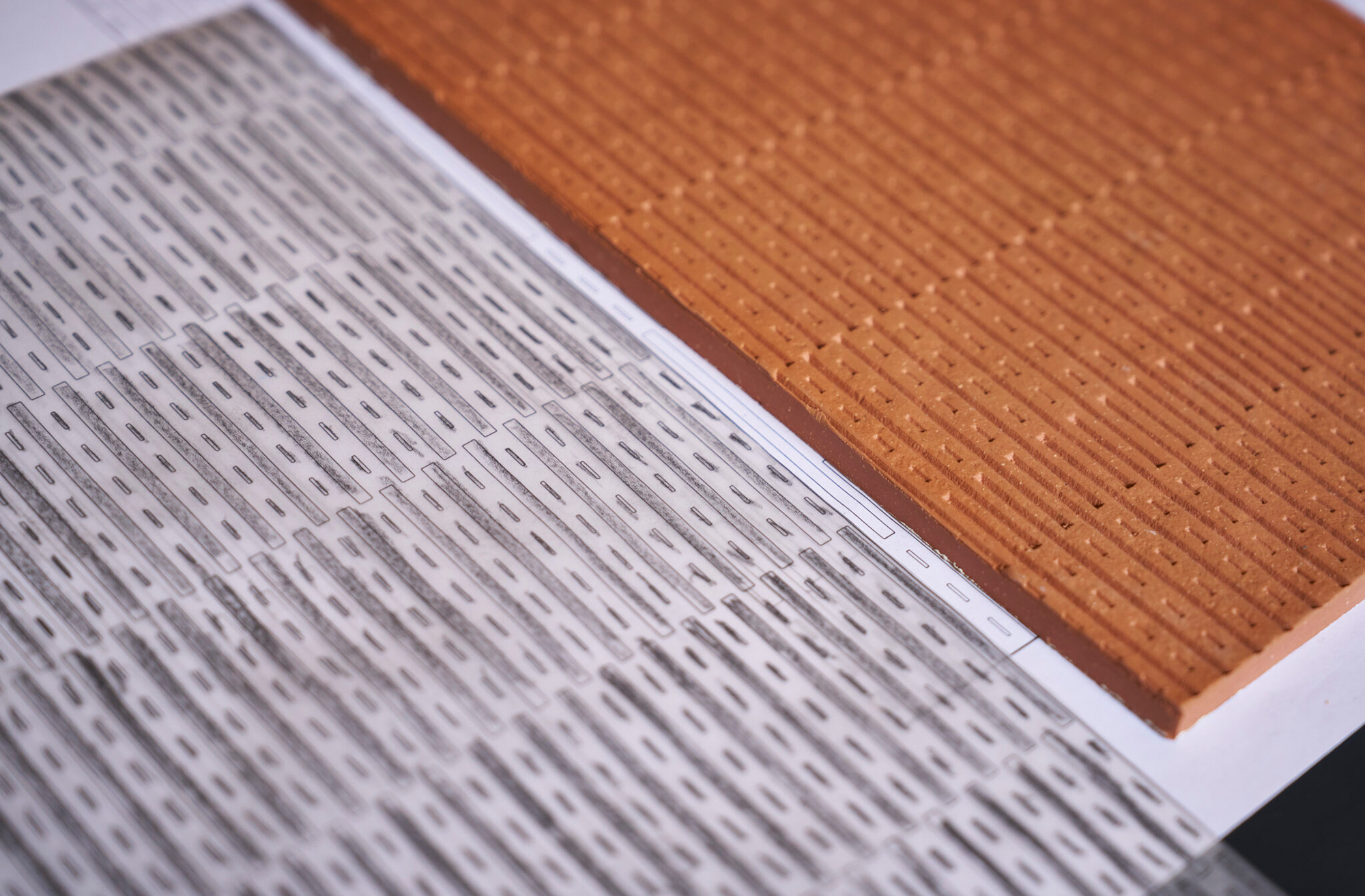 Beat translates linear patterns into ceramic tiles – offering clear structures and spatial depth.