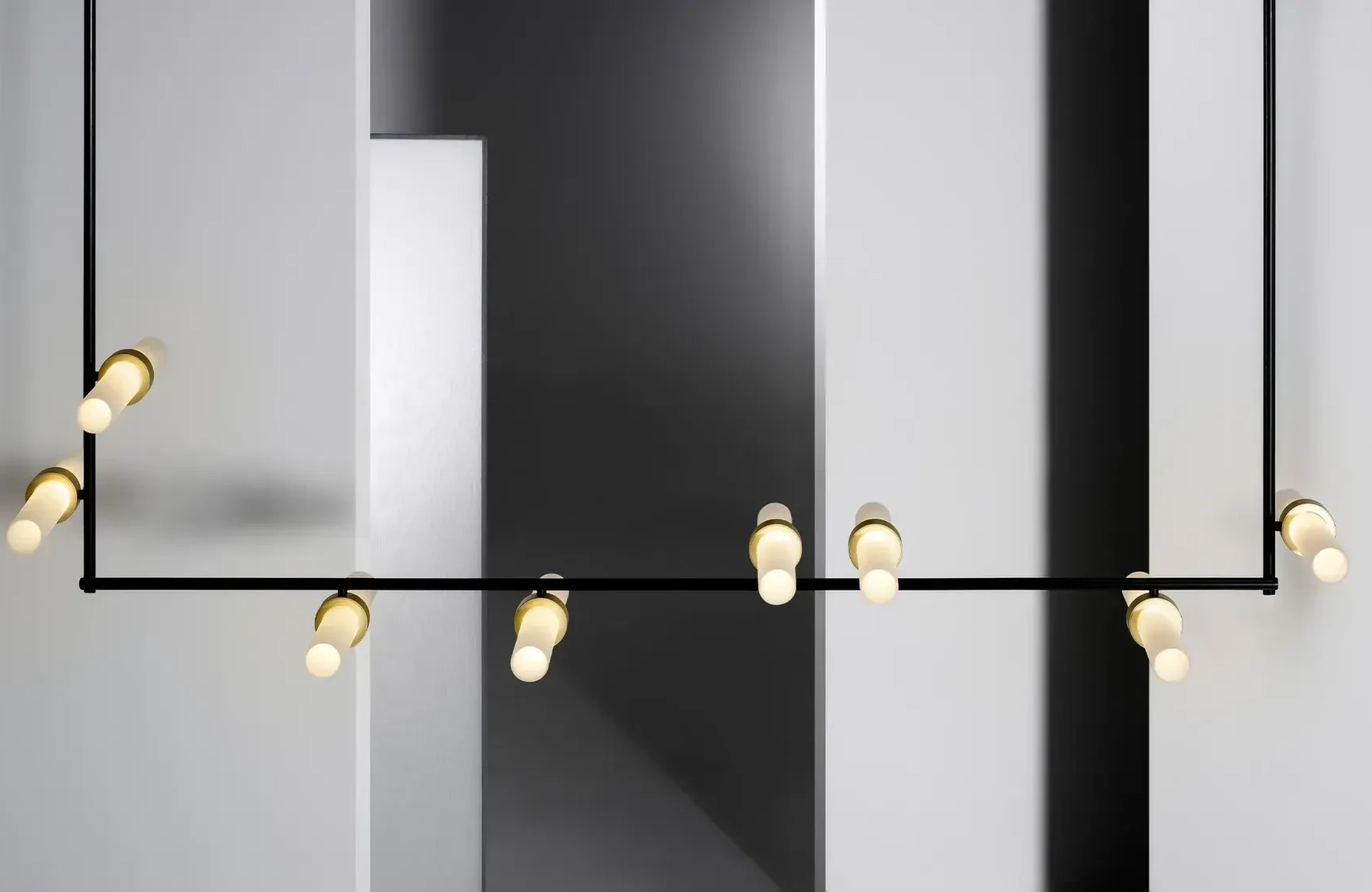 Using Rakumba’s Typography rail system, each light can be positioned anywhere on and around the rail to create a unique sculpture. Lights can be controlled independently of one another for a highly tailored lighting effect. Browse Rakumba’s curated suite of compositions, or create your own.