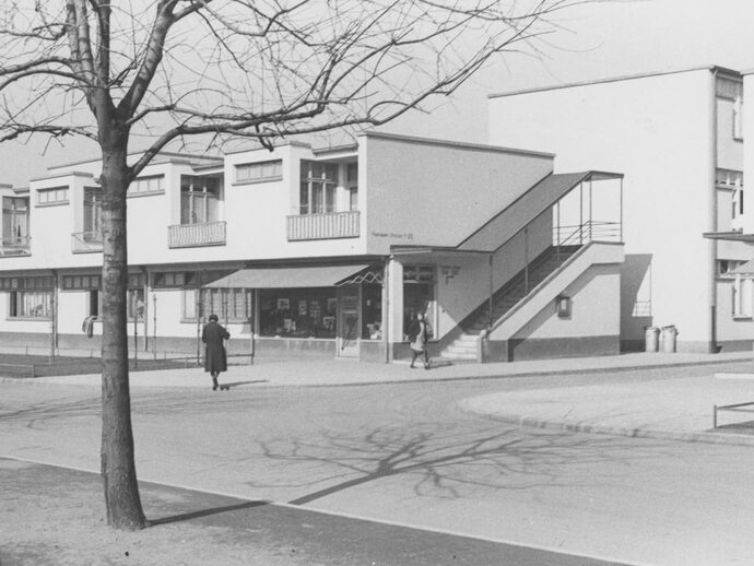 Christina Treutlein: Human needs also extend to the social environment. The settlements are embedded in green spaces. Ideally, every house has a garden, a roof terrace or a balcony. There are local recreation areas right outside the door. The settlement had an infrastructure, and social spaces were also planned. This was not always realised. Unfortunately, many churches and, above all, community centres were not built for cost reasons. But they were included in the plans, as were kindergartens and schools. This was the case, for example, in Römerstadt, where Hadrianstraße, with a school, twelve shops including a café and a doctor's surgery, formed the social centre of the housing estate. Needs as the starting point for the planning and construction of housing estates. Looking at many new residential areas today, it is striking that this broader view of living, which contributes to a sense of well-being, is missing. This is now being rediscovered. We are visited by many students who come to see how settlements and flats were designed in the 1920s in order to gain inspiration for sustainable planning today.