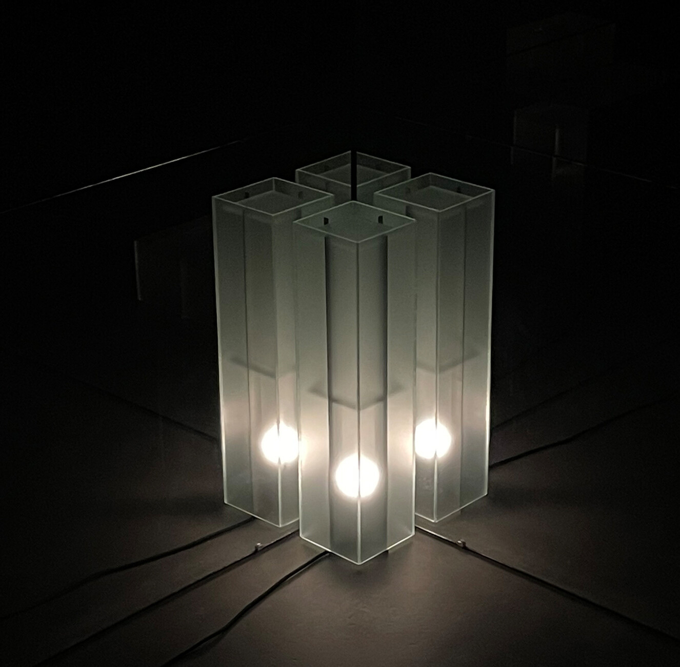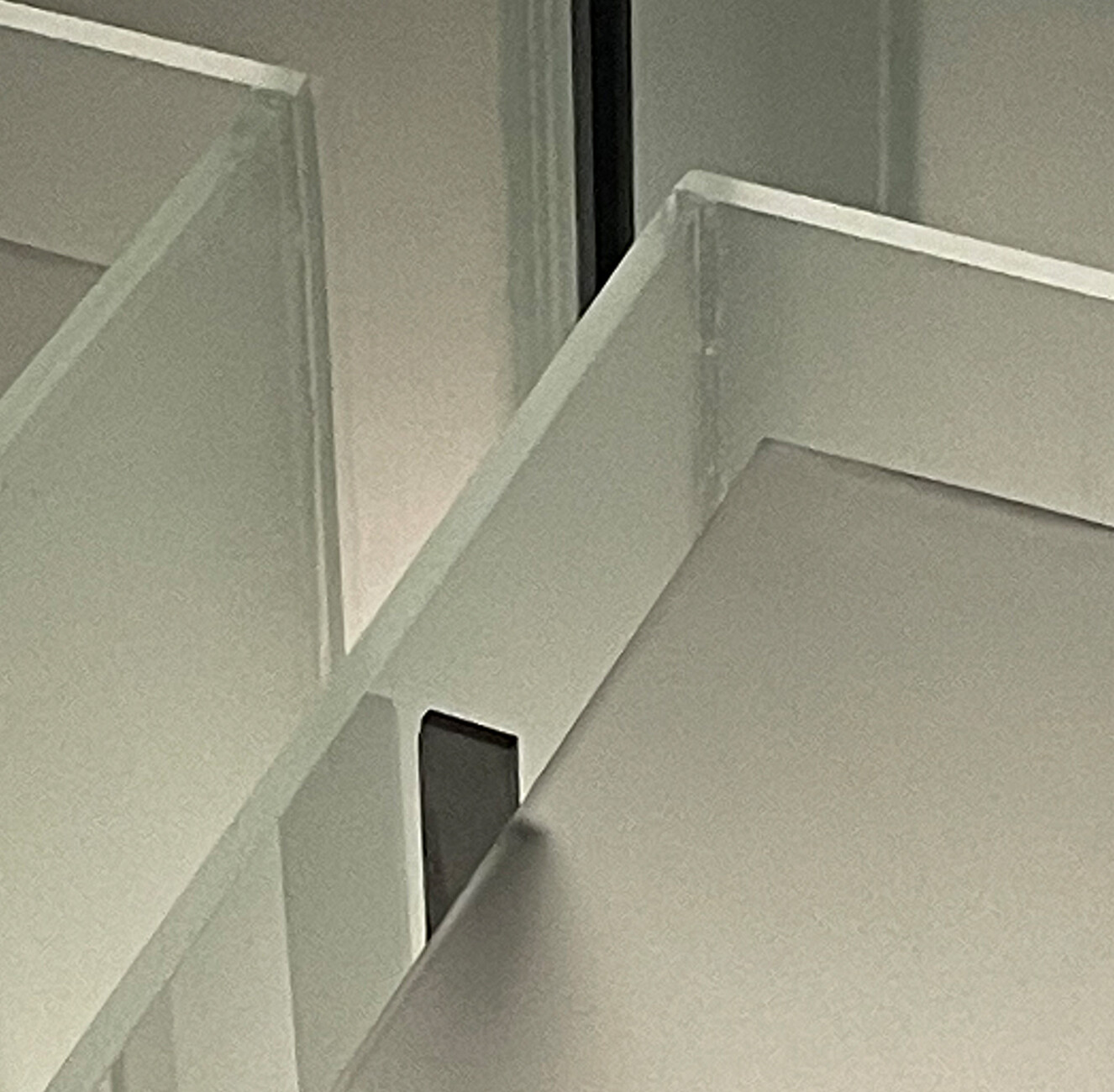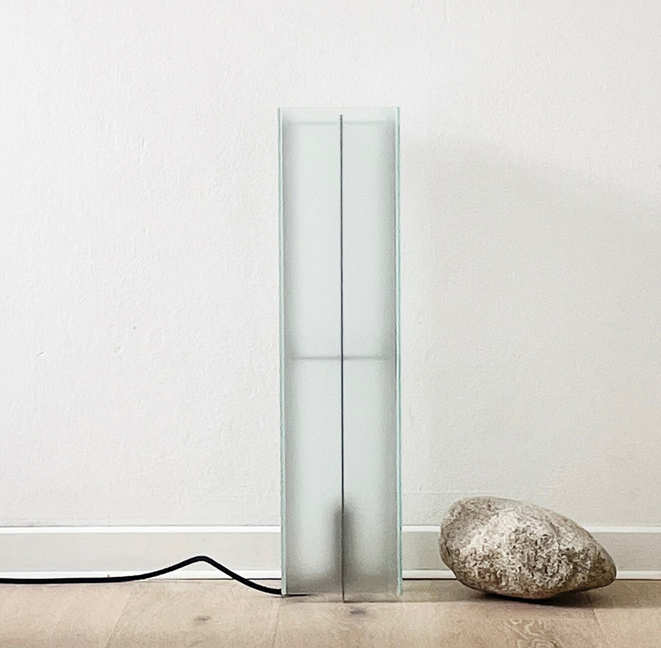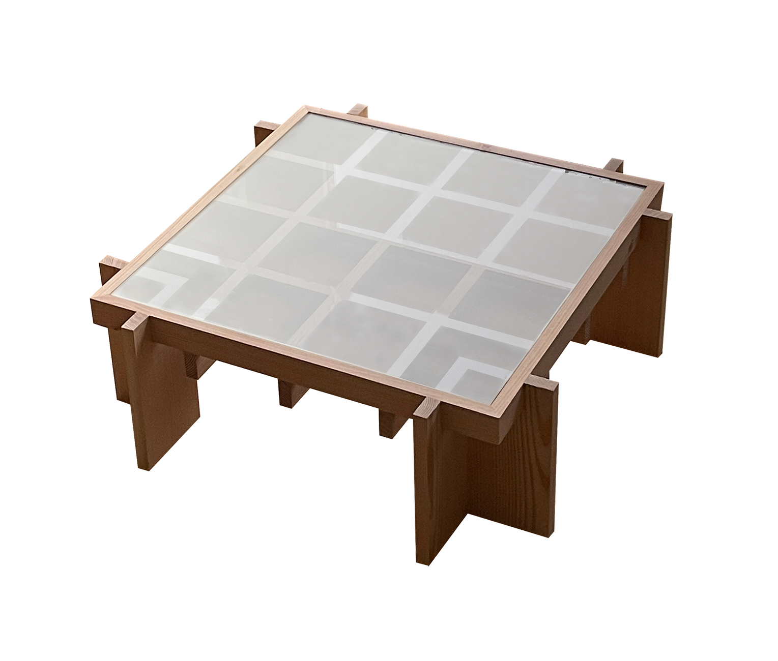 Aaron Wessels: I took my inspiration from ceiling structures in Brutalist architecture. In 2018, I went on a short excursion with a good friend of mine to visit some buildings in the Paris banlieus. I was fascinated by how soft the concrete structures looked in the daylight, how this very strong material is animated by light. Later when I wanted to realize a wooden table, I looked at it again to see how I could produce a formal language using the straight lines and graphic element. I also wanted to combine both with a material that reveals the underlying structure. Clear glass comes across as very hard so I tried out different ways of treating it and then sand-blasted the material myself. That was the moment when I got closer to achieving the desired effect. Then I came across a small family-run glassworks in Copenhagen that recommended satinized glass to me, in other words a combination of sandblasting and chemical treatment. And that is more practical into the bargain, as you can touch satinized glass without leaving behind fingerprints. The light falls beautifully through the glass onto the structure and adds a certain diffuseness that lends warmth to the material. Moreover, the combination of wood with the satinized glass is a tad tectonic. Peter Zumthor once said that the room and the object need to be given the right temperature, as it were, and I think that’s very true.