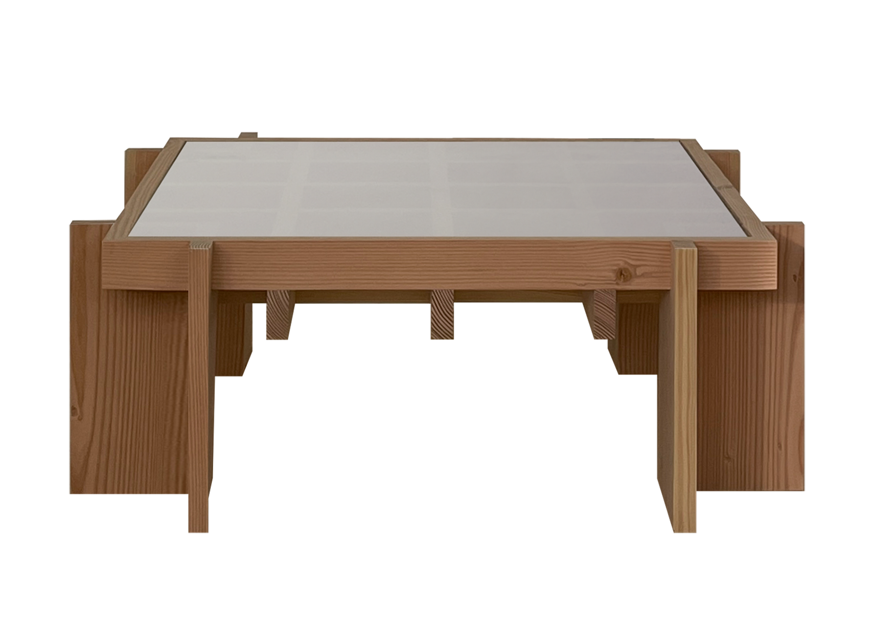 The clear structure of the “Brut” side table consists of Douglas fir cut-offs from Dinesen and satinized glass – what made you choose this combination?