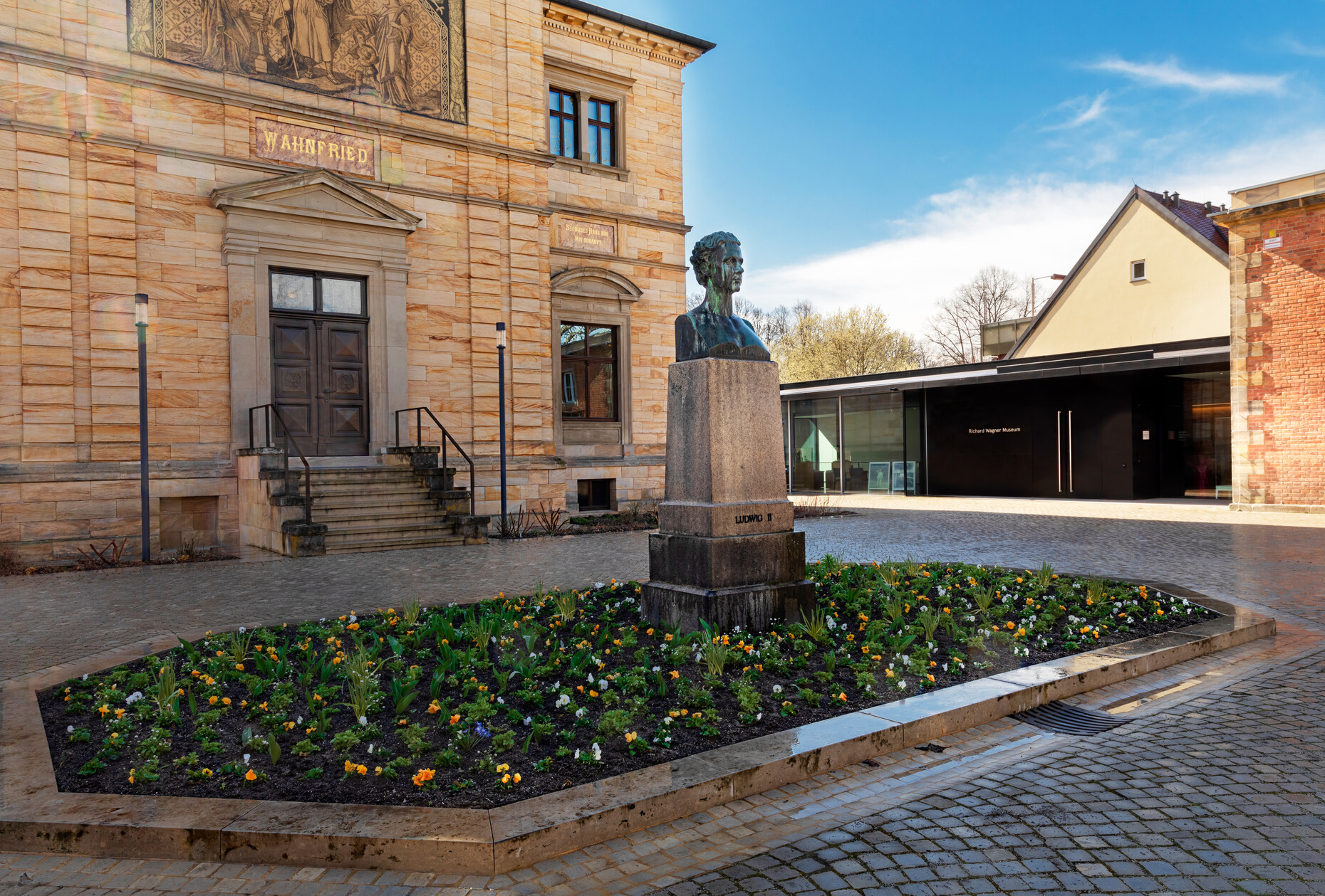 “Here where my delusions have found peace, let this place be named Wahnfried.” This inscription is to be read on the front of the villa where composer and author Richard Wagner lived and worked in Bayreuth. The fact that the words are written in gold and the freestanding position of “Villa Wahnfried” clearly underscore the building’s dominating position in the complex that today accommodates the Richard-Wagner-Museum. Staab Architekten took on the challenge of creating an appropriate counterpart for the freestanding building: a single-story steel extension with broad glass fronts. It extends out unobtrusively along the original site boundary alongside the main building. Consequently, it stands alone and without detracting from the charm of the historical complex. It is only when you walk through it that the size of the building becomes apparent: In addition to the alternating shows on the ground floor, exhibits on the basement level tell the story of the Bayreuth Festival.