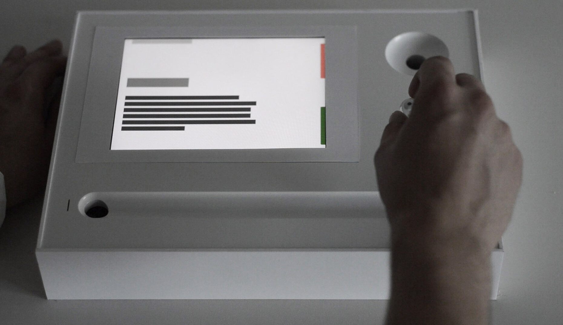 Fabian Hemmert: In our seminar, we chose the topic of what our society might look like in the future if the technical developments we are currently seeing continue in a dystopian direction, which is also reflected in a critical kind of design. For this, we analyzed different areas, such as insurance and our legal system. What might happen if we are one day ruled by the algorithm? To investigate, our students – David Hrlic, David von Netzer, Alexander Görts, Christopher Weld, and Piet Becker – researched during the semester, identified potentials, compiled concepts and sketches, and then created physical prototypes in our workshop. I created a time-lapse of this process, and this video also serves to convey our approach: The bulk of a design process is basically conceptualization, and that involves extensive research. We incorporated the designs into a fictional everyday story in a possible dystopian future.