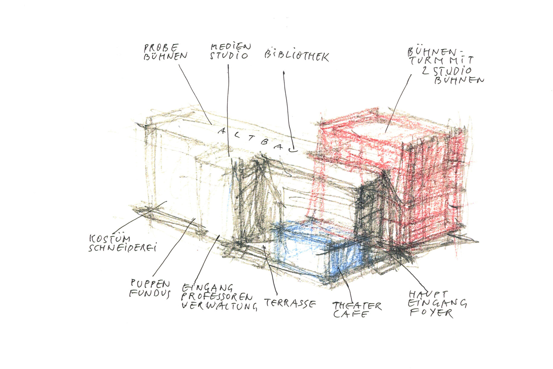 Since the debacle over the new airport most people must have realized that building projects in Berlin can occasionally take longer than planned. At any rate the Berlin Brandenburg Airport is now finished, providing stark evidence that everything does get completed at some point. The same is true of the Ernst Busch Academy of Dramatic Arts, the evolution of which may not have generated as much media attention, but which does have similar tragicomical potential as regards spiraling costs and delays. The ensemble is the outcome of a competition that was won back in 2011 by Ortner & Ortner Baukunst. The brief was to convert the former Opernwerkstätten in Berlin’s Mitte district so as to bring the acting, directing, choreography and puppetry courses that were previously sited all around the city together under a single roof. However, the realization of this objective took seven years and at a cost of EUR 44 million went way beyond the estimated budget. And this period of time was accompanied by a project stop, student protests as a reaction to that, not to mention spiraling construction costs including a bankrupt firm.