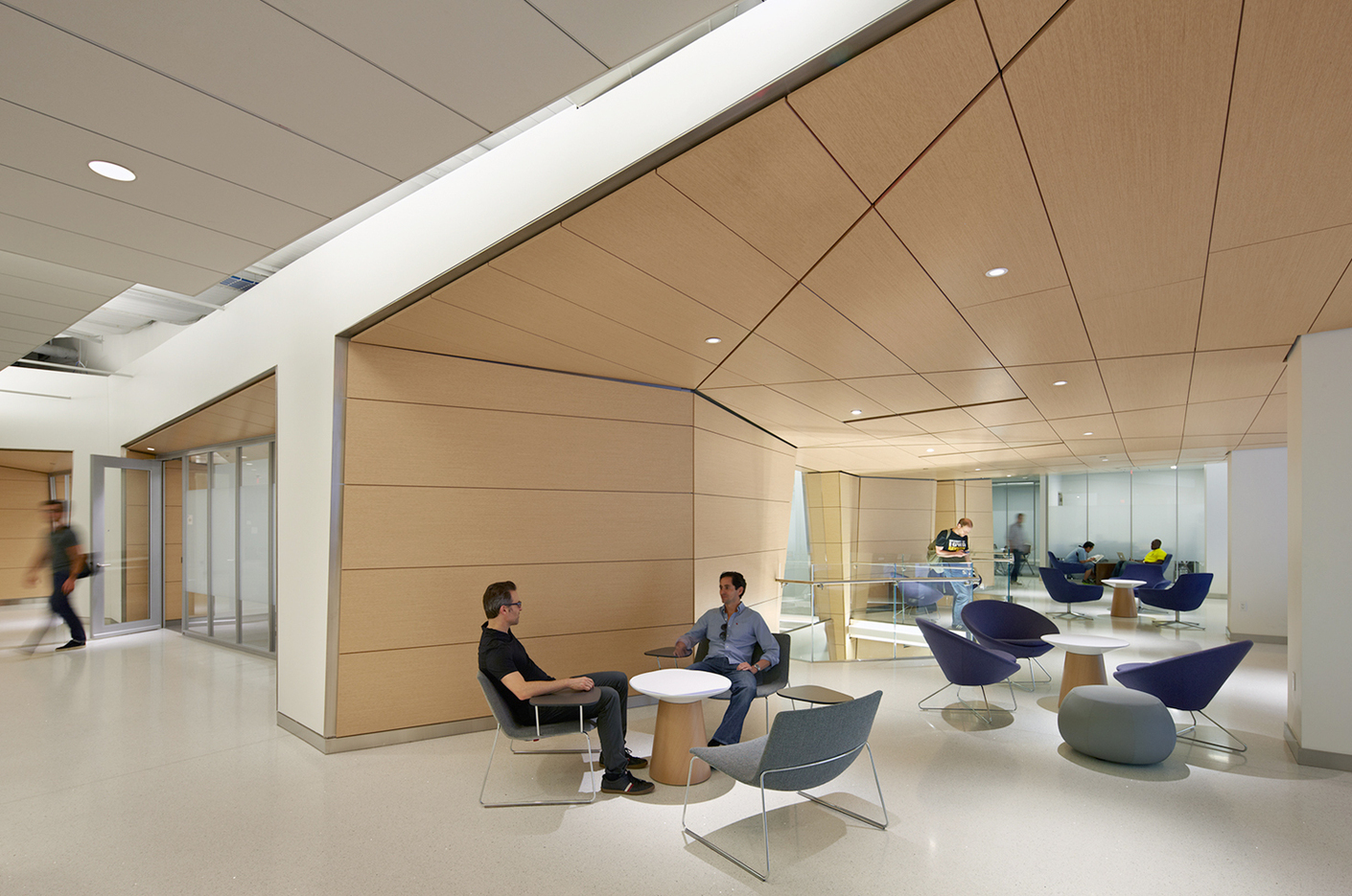 To bring together its various off-campus programs at a single place, elite Georgetown University in Washington D.C. chose a former TV studio as its extramural seat. Given the building’s prior use, its ground plan features a plethora of small rooms and a windowless façade designed to keep as much daylight as possible out of the recording rooms. Studios Architecture replaced this with a two-story glass façade that strongly emphasizes the building’s presence in the urban fabric. Moreover, in the atrium a central white staircase leads up to the rooms on the four floors. Bright wooden cladding provides warm accents. Small islands for meetings and recreation areas give the overall layout a leisurely feel: In the latter, you can enjoy using the seating courtesy of long-standing furniture makers Arper: “Catifa 46” and “Catifa 80” collections by Lievore Altherr Molina. With frames made of powder-coated aluminium, the “Catifa 46” chair is all about sturdy flexibility.