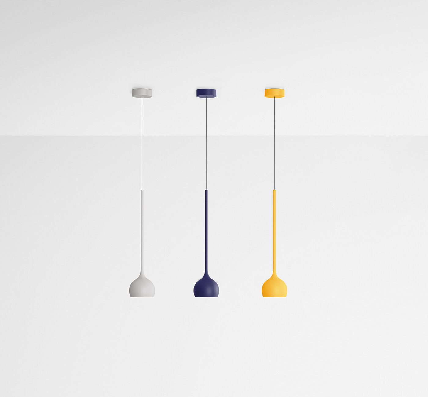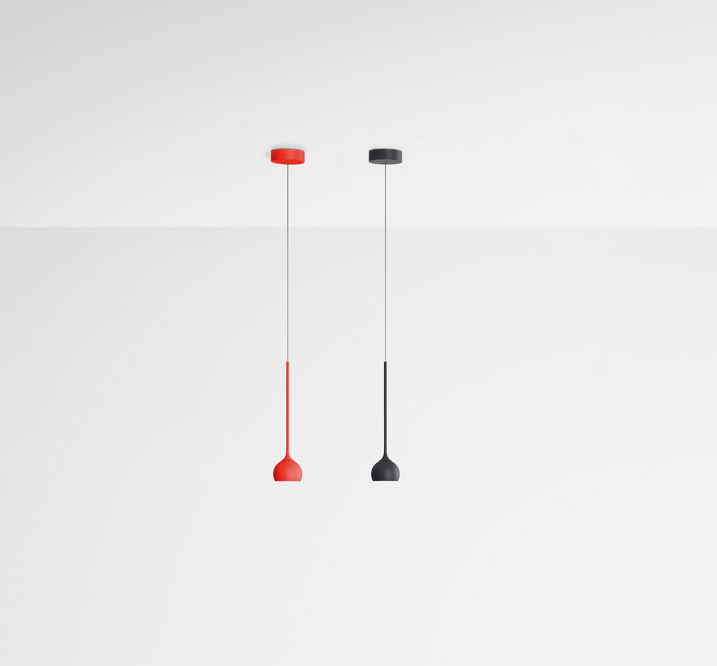 A new aspect is added to the group by "Ixa Suspension", as it continues its aesthetic style without joints. The silhouette of the pendant light draws a vertical line in the room, at the end of which the light head with a diameter of ten or fifteen centimetres is seamlessly attached. Available in the same five classic colours, Artemide has skilfully created a counterpart to the mechanically flexible members of the series.