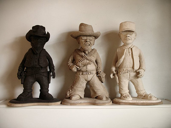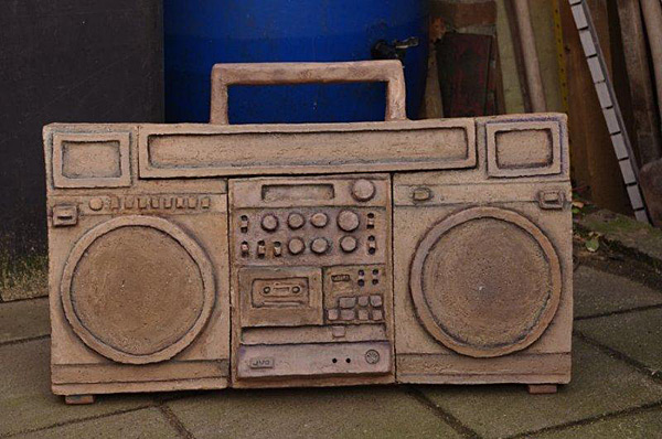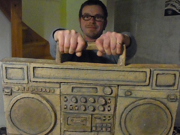 NINA REETZKE: IS THERE A STORY BEHIND THE PORTRAIT OF YOURSELF AS A COWBOY? JON SMITH After I was born, in order to help my brother bond with me, he was allowed to name me. His favorite toy was a thirty centimeters high cowboy action figure named Jonny West, so that was the name he gave me. My parents were not happy as our family name is Smith, but they stayed true to their word. I was known as Jonny West for years until someone asked my mother if her name was Mae West, for her first name was unfortunately “May”. That day she called a halt to me being called Jonny West. Sixteen years later I started making cowboy-influenced work at Art College after finding another Jonny West in a secondhand shop. This developed into a series of photos in which I am dressed as a cowboy; I used the magic of the now outdated technique of back-projection, to create the illusion that I was in a gun battle with six-centimeter-high cowboys. SMITH Generally when making these industrial forms I am not trying to make an exact copy. Even if I am making a particular model I am more interested in finding its character, bringing it out in the clay and expressing a particular thought or feeling. A ghetto blaster should be rugged almost stone age, for example. Or take my dead father’s camera, which needed to be more fragile and precious, I achieved this using finer clay and glaze. When an industrial object is made in ceramic it becomes frozen in time or fossilized, its moving parts don't work; it becomes kind of comic in its impotence or menacing in its new heavy-duty form. The viewer can simply enjoy the abstract forms or imagine that they are in the distant future looking at an artifact from an ancient religious practice, consumerism. SMITH My work partly references Pop Art in its style, in its toy-like cartoon appearance; and then in my choice to remake facsimiles of products that have gained an iconic status for me, as part of a subculture, or society in general. Also in some works by positioning myself as though I were the star of my own celebrity culture. And the most obvious reference of all would be remaking other artists’ work in my own style: Andy Warhol’s “Triple Elvis” as a photo using small miniature toy-cowboys; Jasper Johns’ “Target” in a match box and in a tin, and other target pictures made of toy-soldiers etc. But probably the most “Pop-Art” thing about me and my work is the paradox; the enjoyment and celebration of something that is deeply unsound: consumerism with its very dark underside. Although I touch on this occasionally and have read my Naomi Klein, I continue to fall back (as most of us do) under its spell. SMITH I think Dick van Hoff's table lamp looks great, a real must-have item. I do like the idea of the arts and crafts movement making resurgence in design. We have become so accustomed to cheap, industrially-produced objects, that many people no longer find any kind of aesthetic value, respect or appreciation in their own house which is filled with their own possessions. If something breaks they just throw it away. Low-end, mass-market products often take their cue from high-end designs so it might filter down. As technology gets smaller I would like to see a traditional kitchen tile with a built-in hidden radio, or speaker tiles that can be placed around a tiled room, hidden and protected. I do see downsides though: cost, weight, a long development time and robustness. I’ve chipped my own work before, I guess a ceramic vacuum cleaner, however stylish, would be heavy and one crash with a table leg could be a disaster for both (maybe I should make one). I would like to see the craft of papier-mâché make a comeback. A skill that seems to have disappeared although it is strong and durable and could be made using recycled paper. SMITH After watching “Star Wars” in 1977, I became somewhat obsessed with the idea of going to the stars and even bought myself a very large, second-hand reflector telescope, only to find out that the lamppost next to our house caused light pollution and I could only see the moon! I’ve always wanted to see the Milky Way and when I visited Africa I thought “Yes, now I will see it!”, but found that it got cloudy every night. So I guess I’m destined to be earthbound, plus it does seem kind of dangerous. But if I was to go I would like to go up in a balloon, slowly up to the edge of space where the sky turns black and the horizon is round; and then just jump out with a parachute. That can’t be so dangerous, can it?