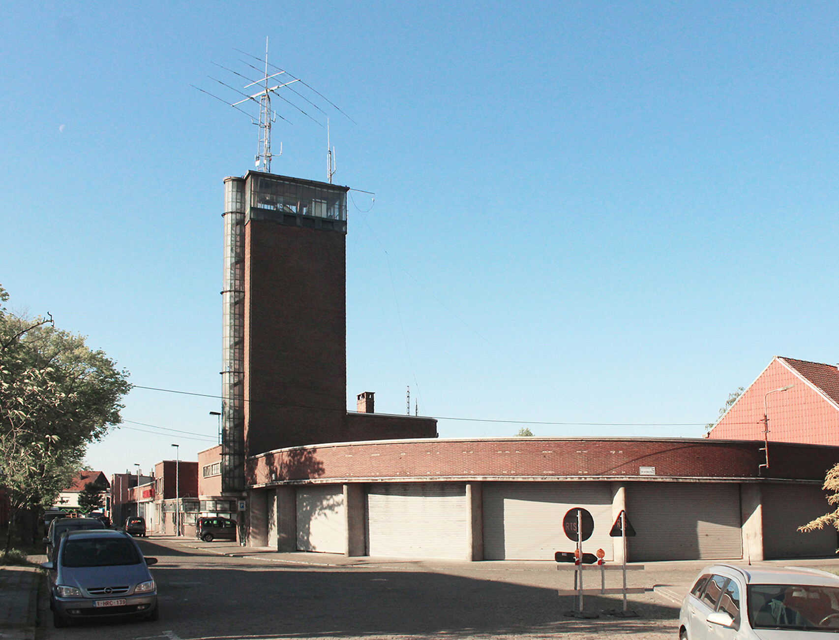 What a beautiful building! you can’t help but say as you approach the old fire station in Kortrijk. It’s located just a few hundred meters from the central station and its tall, slender tower can be seen from afar. It is reminiscent of an early Modernist church tower, sleek and angular, and topped with a transparent dome that now houses an artwork of curving LED strips which glow in the dusk.