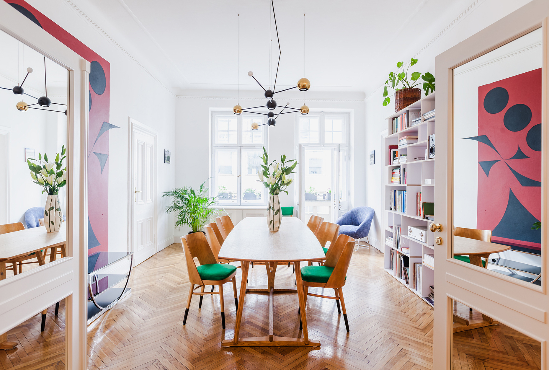 The original outlay of the apartment but also the doors, locks and windows were all retained. In addition, very little in the rooms is “off the peg”. The hand-crafted lighting fixtures were supplied by manufacturer Ultralight. Specially fashioned glasses, mirrors and door handles were conceived by designer Maria Jeglinska. Beza Projekt designed the hand-dyed woolen bedding and the young cabinetmaker duo Segiet Oniszh designed and realized the large oak table that takes pride of place in the shared living and breakfast room. Thanks to the unerring selection by the curators of the Polana Institute the Autor Rooms are a creative oasis. The special flair comes from the successful blend of historic patina, artful stucco ornamentation, and the creaking floorboards that all combine to provide an appropriate setting for the avant-garde artworks and the large collection of vintage Polish furniture. Autor Rooms not only promises 100 percent Polish design that you can admire and use – but anyone who would like to take a favorite item back home with them can do just that: “If a guest falls in love with an item we put them in contact with the designer so as to enable a purchase,” explains the team.