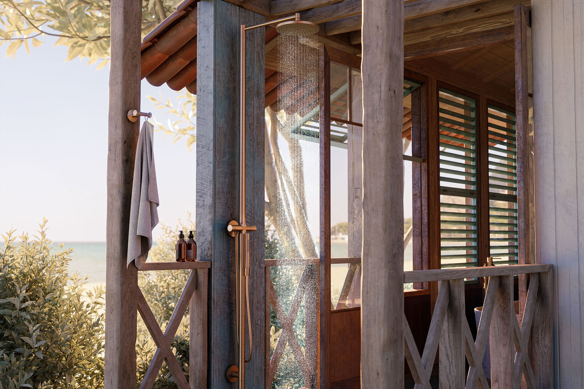 The reinterpretation of outdoor spaces into living spaces is becoming increasingly popular. "Nature living" is the name of the trend, in which indoor objects are used outdoors to contribute to rest and relaxation. One example is the "AXOR Starck Nature Shower" designed by Philippe Starck: the outdoor shower presents itself as a minimalist archetype based on circular and cylindrical shapes and a narrow shower pipe. "With the AXOR Starck Nature Shower, the boundaries between indoor and outdoor continue to soften. With its clear design language, luxurious and durable materiality, and improved technology, it offers every comfort of the AXOR Starck shower column known from the interior. The AXOR Starck Nature Shower turns the shower into a meditative ritual in harmony with nature," says Anke Sohn, Head of Global Brand Marketing AXOR about the concept. This also applies to the integrated technology with the "PowderRain" spray type, which flows barely audibly from the overhead shower and surrounds the body like a gentle summer rain. In addition, there is a wide range of weather-resistant surfaces such as "Matt Black", "Brushed Bronze" or other "AXOR FinishPlus" surfaces, which ensure that the "AXOR Starck Nature Shower" blends into any environment.