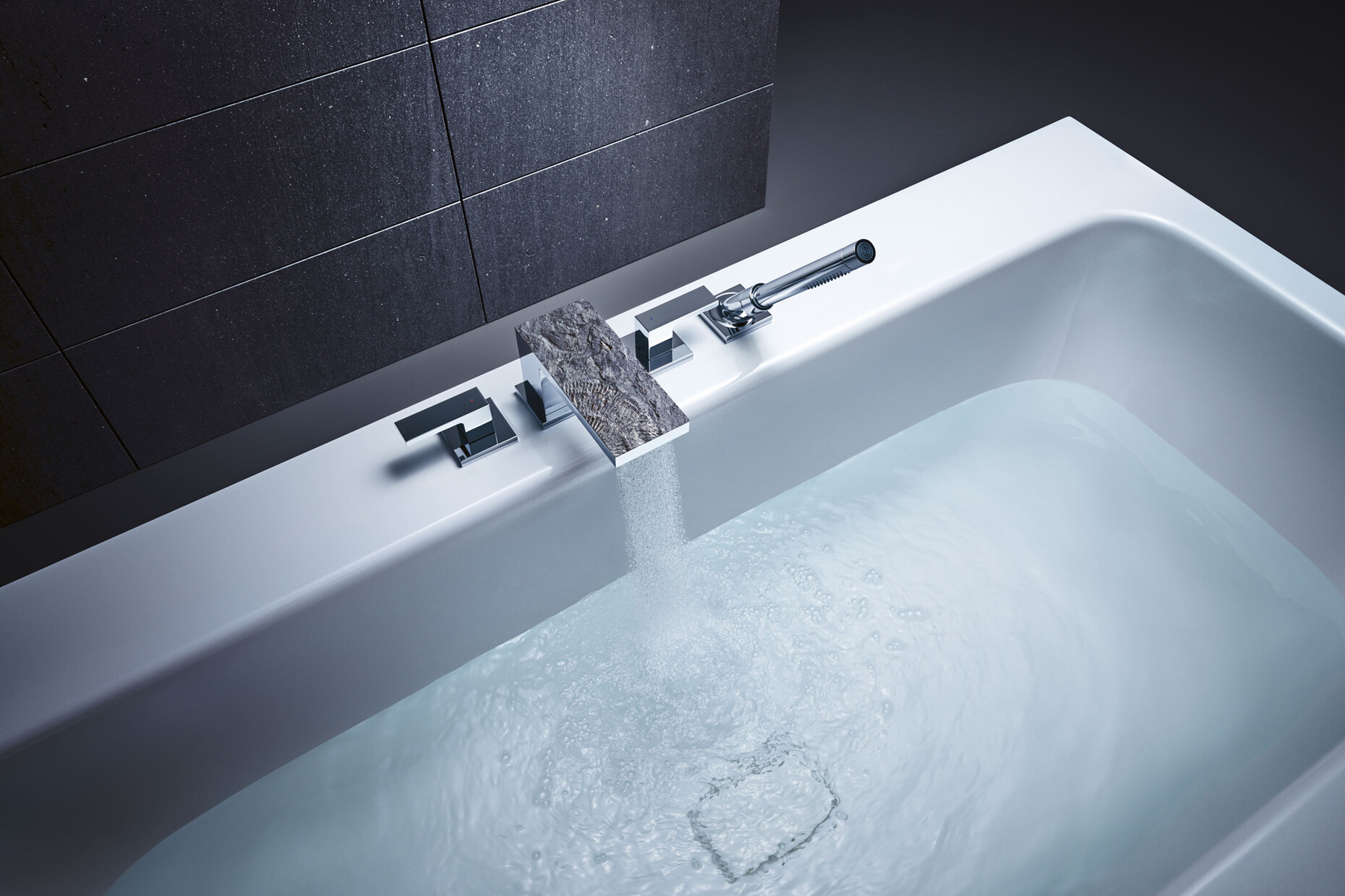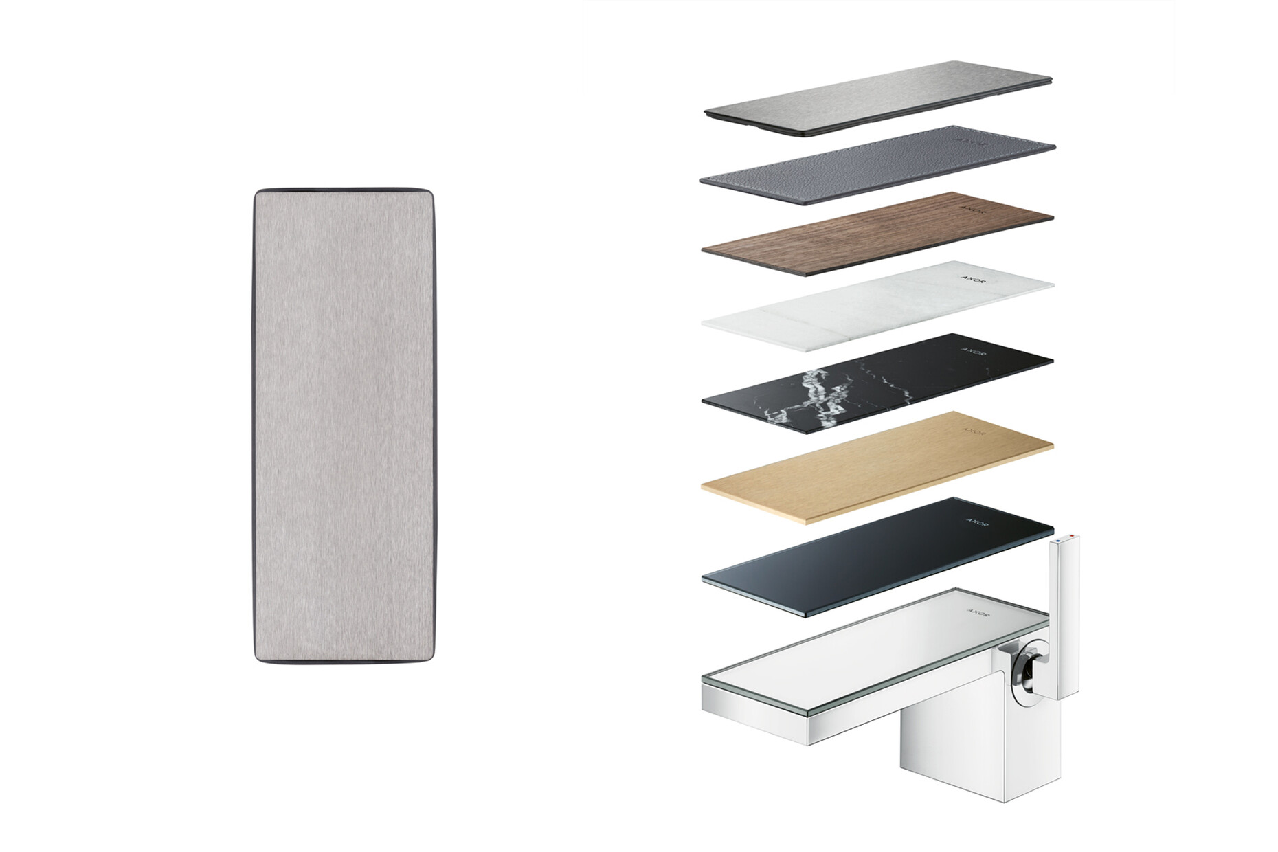 With “AXOR MyEdition” AXOR is following the trend in individualization by presenting a collection with which users can give free rein to their own creativity. The principal behind it could not be simpler. The upper end of the flat, minimalist mixer created by Phoenix Design is topped off with a cover plate made of an individually chosen material. The materials available include Napa leather, mirrored glass, walnut or white Lasa marble. However, AXOR goes even further, offering users the opportunity to add their own, personal touch to their “AXOR MyEdition” mixer with the help of material experts.